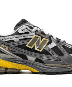 The New Balance 1906U “Castlerock/Ginger Lemon” is a grey-based colorway of what New Balance calls the “utility” version of the retro shoe. The New Balance 1906U has a rugged design for utilitarian purposes, as the shoe features a diamond-grid ripstop base instead of the standard New Balance 1906R’s mesh construction. As for the “Castlerock/Ginger Lemon,” the shoe has a black ripstop base contrasted with light and dark grey synthetic overlays. Ginger Lemon accenting appears on the outline of the “N” logo on the sides, and on the other branding found throughout the shoe. An N-ergy midsole provides optimal comfort. Castlerock Ginger Lemon