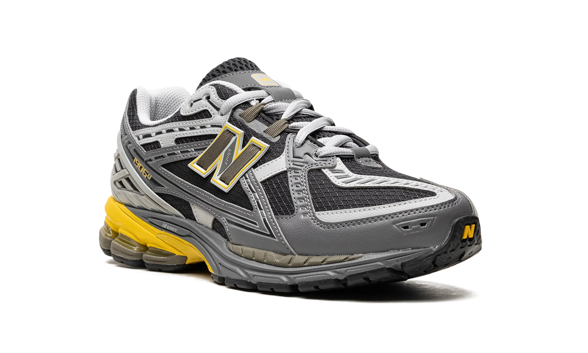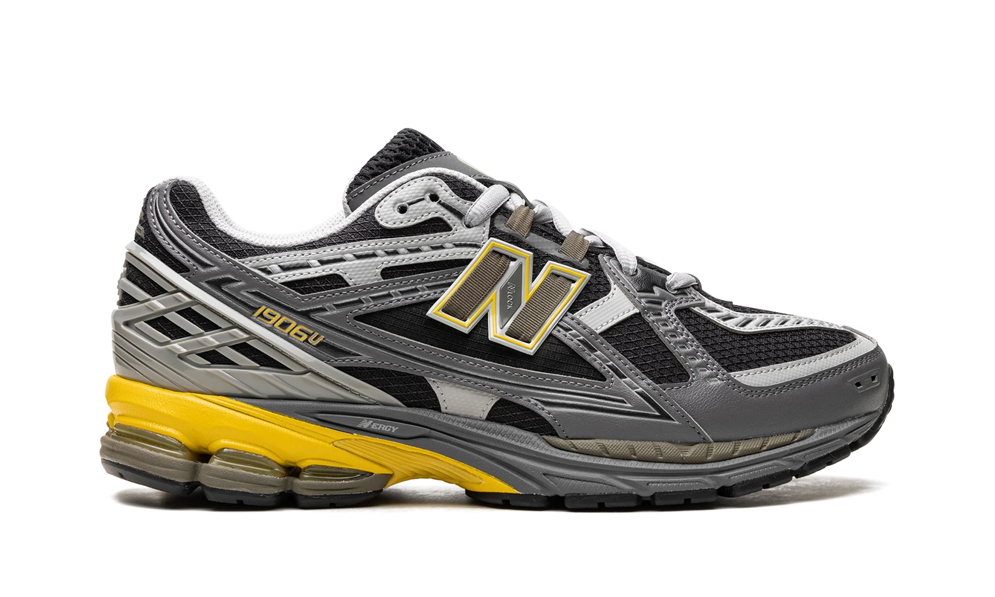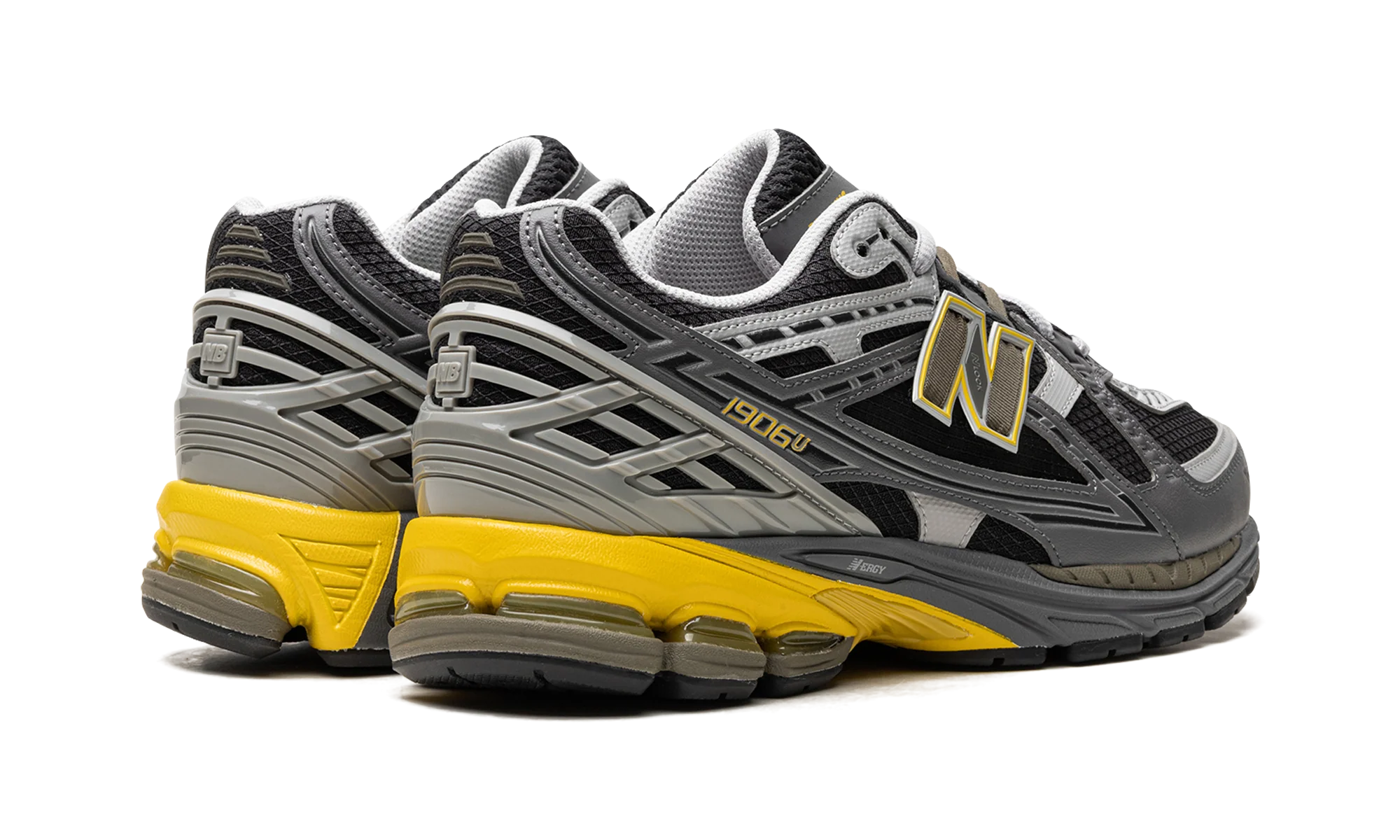 The New Balance 1906U “Castlerock/Ginger Lemon” is a grey-based colorway of what New Balance calls the “utility” version of the retro shoe. The New Balance 1906U has a rugged design for utilitarian purposes, as the shoe features a diamond-grid ripstop base instead of the standard New Balance 1906R’s mesh construction. As for the “Castlerock/Ginger Lemon,” the shoe has a black ripstop base contrasted with light and dark grey synthetic overlays. Ginger Lemon accenting appears on the outline of the “N” logo on the sides, and on the other branding found throughout the shoe. An N-ergy midsole provides optimal comfort. Castlerock Ginger Lemon