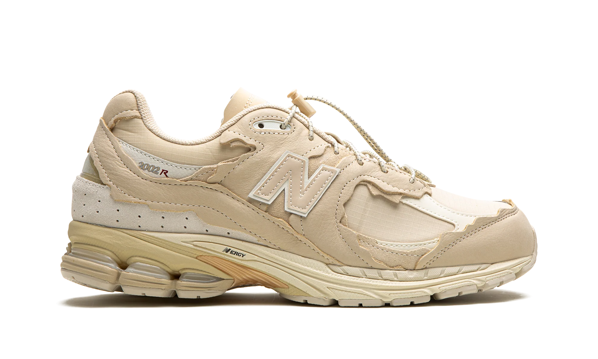 Discover the New Balance 2002R “Protection Pack – Sandstone,” a unique casual sneaker with trail-inspired design elements. This alternate version of the 2002R features pre-distressed details, including a tan ripstop nylon base and “frayed” tan suede overlays for a worn-in aesthetic. Trail-style laces with a lace lock add to the rugged look. Experience comfort with the ABZORB cushioned midsole in this stylish and distinctive shoe. Protection Pack – Sandstone