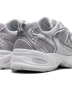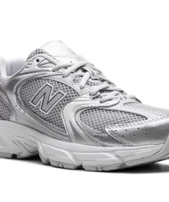 Blend everyday style with modern tech in the New Balance 530 “Moonbeam Silver Metallic.” This unisex sneaker offers a bold, chunky silhouette with Y2K-inspired details. A knit mesh base is overlaid with a striking lattice of silver and moonbeam metallic, creating unique visual texture. Experience superior comfort with modern ABZORB cushioning, designed to absorb impact. Complete with signature New Balance branding, these sneakers deliver both style and performance. Moonbeam Silver Metallic