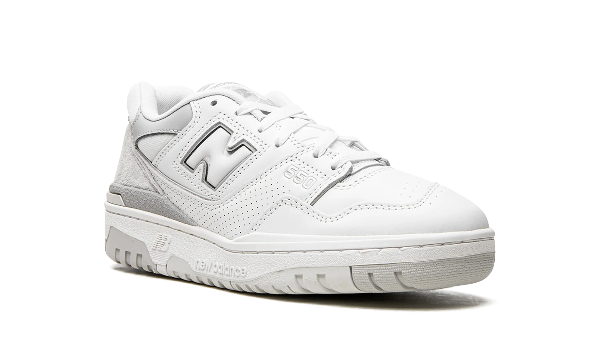 The Women’s New Balance 550 “White/Rain Cloud” is a women’s-exclusive colorway of the vintage basketball shoe with neutral tones. The “White/Rain Cloud” New Balance 550 updates the popular sneaker with a neutral-based color block that excels in wearability. The white leather upper features tonal and grey leather overlays. A white “N” logo appears on both sides of the shoe. Tonal “550” branding is found on the forefoot. An “NB” logo appears on the heel while retro-inspired “New Balance 550 USA” detailing is found on the tongue. The 550’s signature chunky rubber midsole is designed in white and paired with a light grey outsole. White Rain Cloud