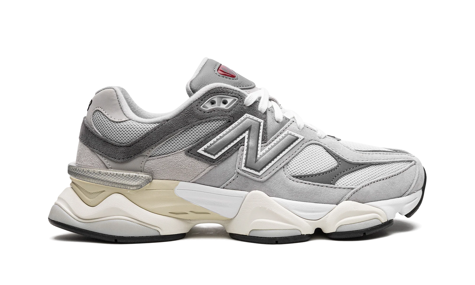 Discover versatile style with the New Balance 9060 “Grey.” This casual lifestyle shoe, appearing in New Balance’s iconic “Grey” colorway, features a grey mesh base with tonal suede overlays. A slightly darker shade of grey leather accents the forefoot and heel. Complete with a tonal oversized “N” logo and a chunky white, cream, and grey midsole. Grey