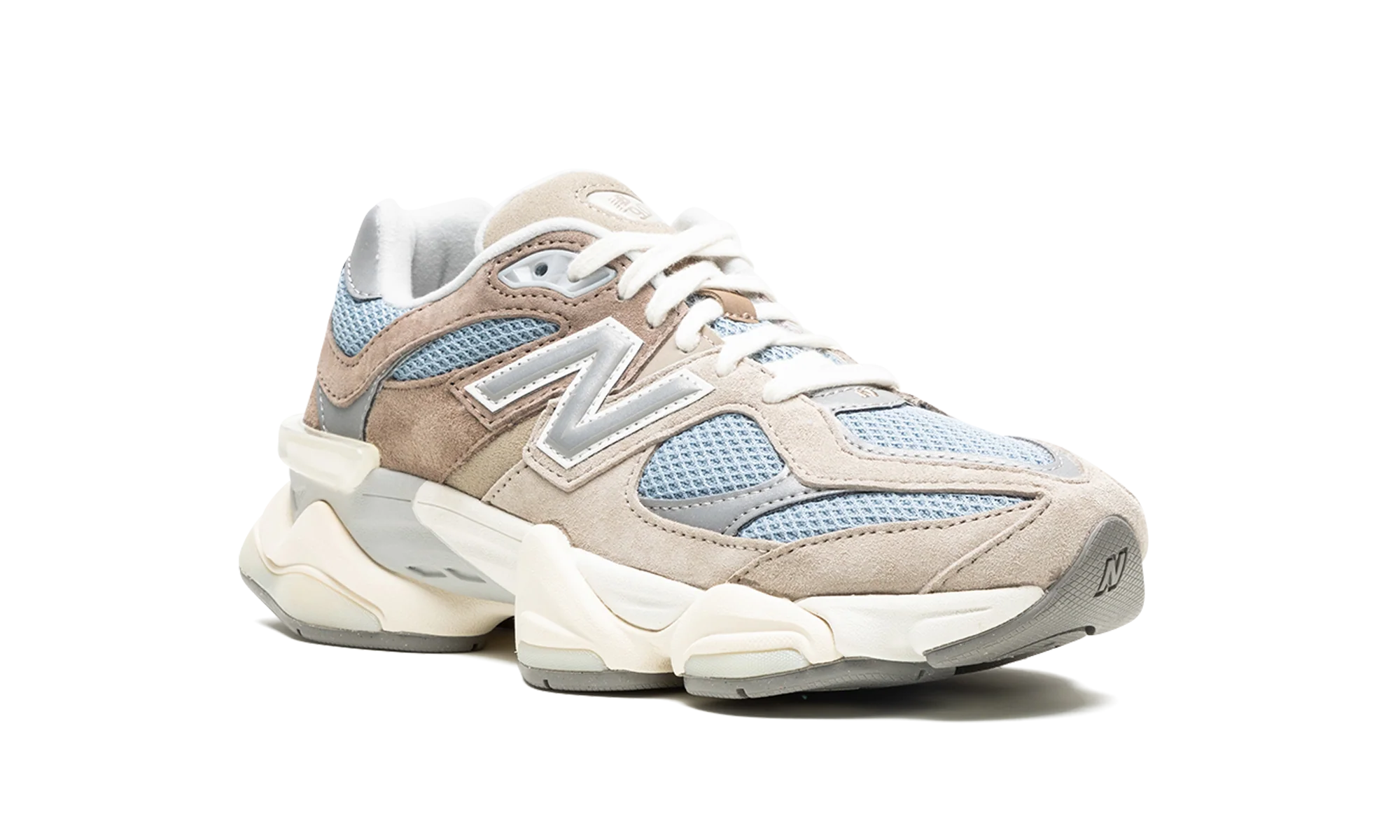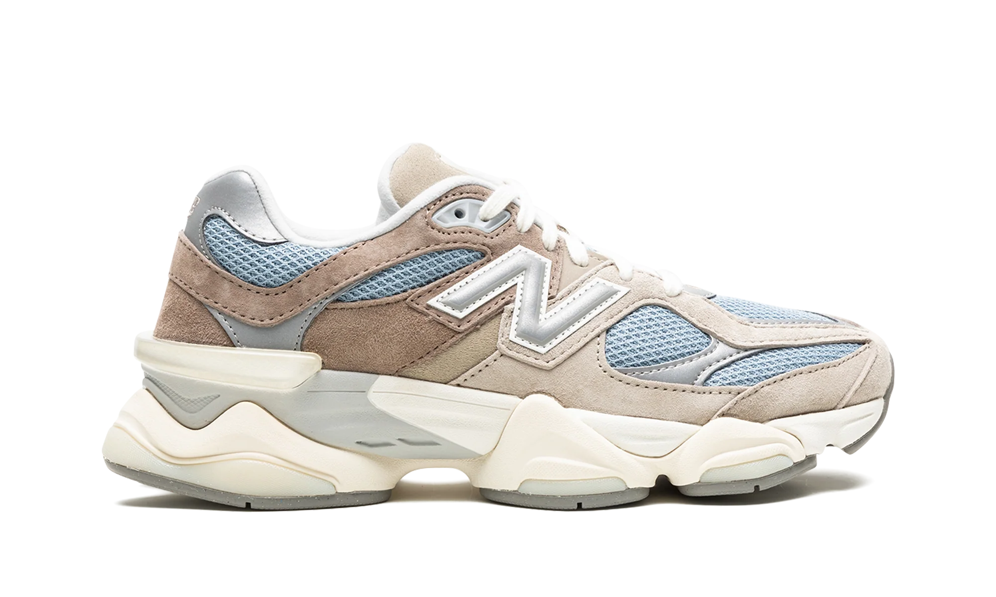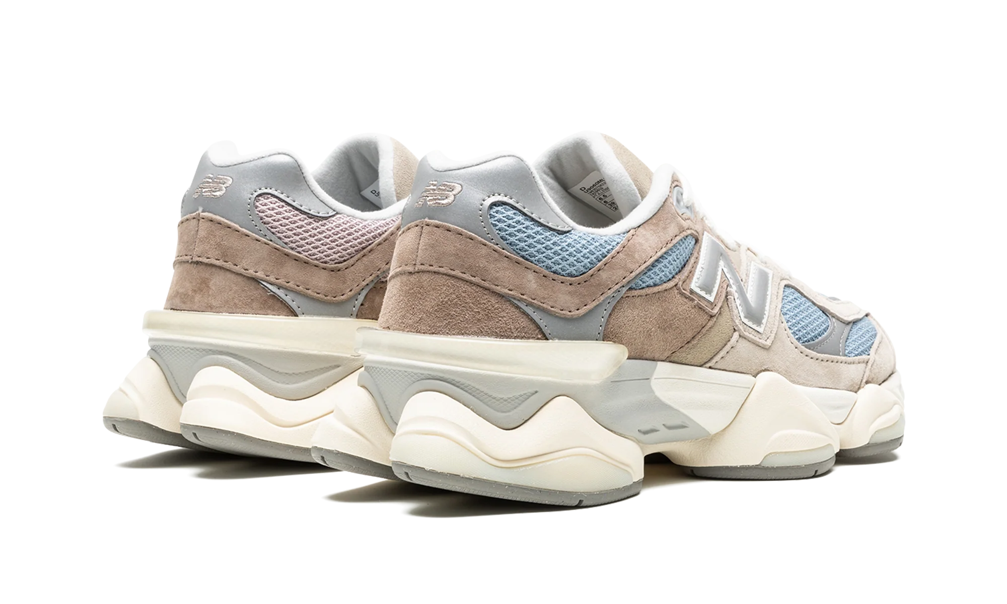 The New Balance 90/60 “Sea Salt/Blue” is a clean colorway of the lifestyle sneaker in subtle, ultra-wearable light tan, grey, blue, and pink tones. This 90/60 features a unique split design with a light blue and pink mesh base. Brown and tan suede overlays contrast the look. An oversized grey “N” logo appears on the lateral side and a white stitched version of the logo is found on the medial side. The 90/60 is complete with a chunky cream and grey midsole. Sea Salt/Blue