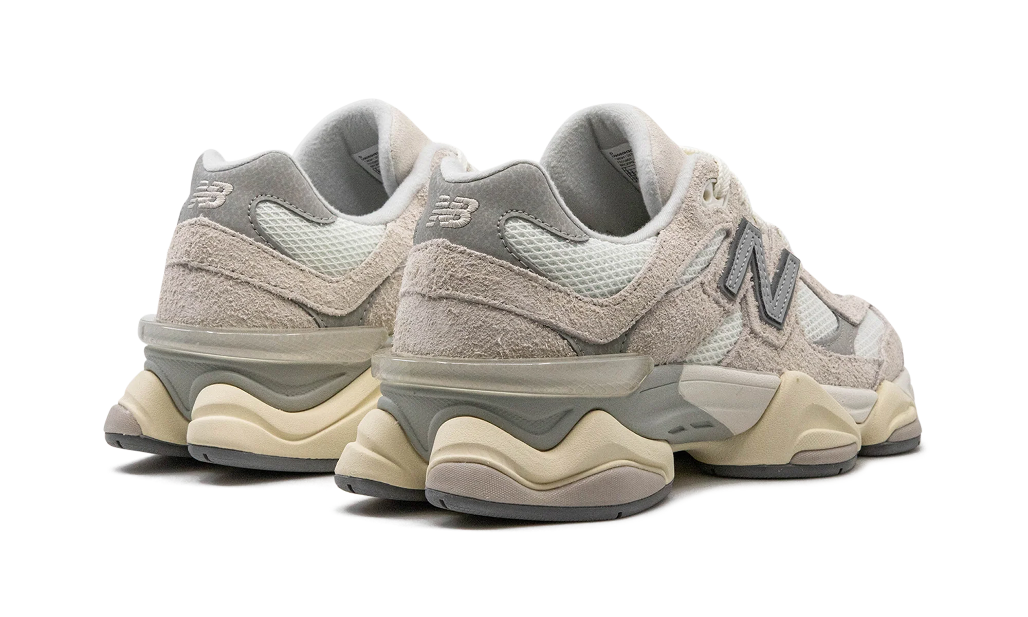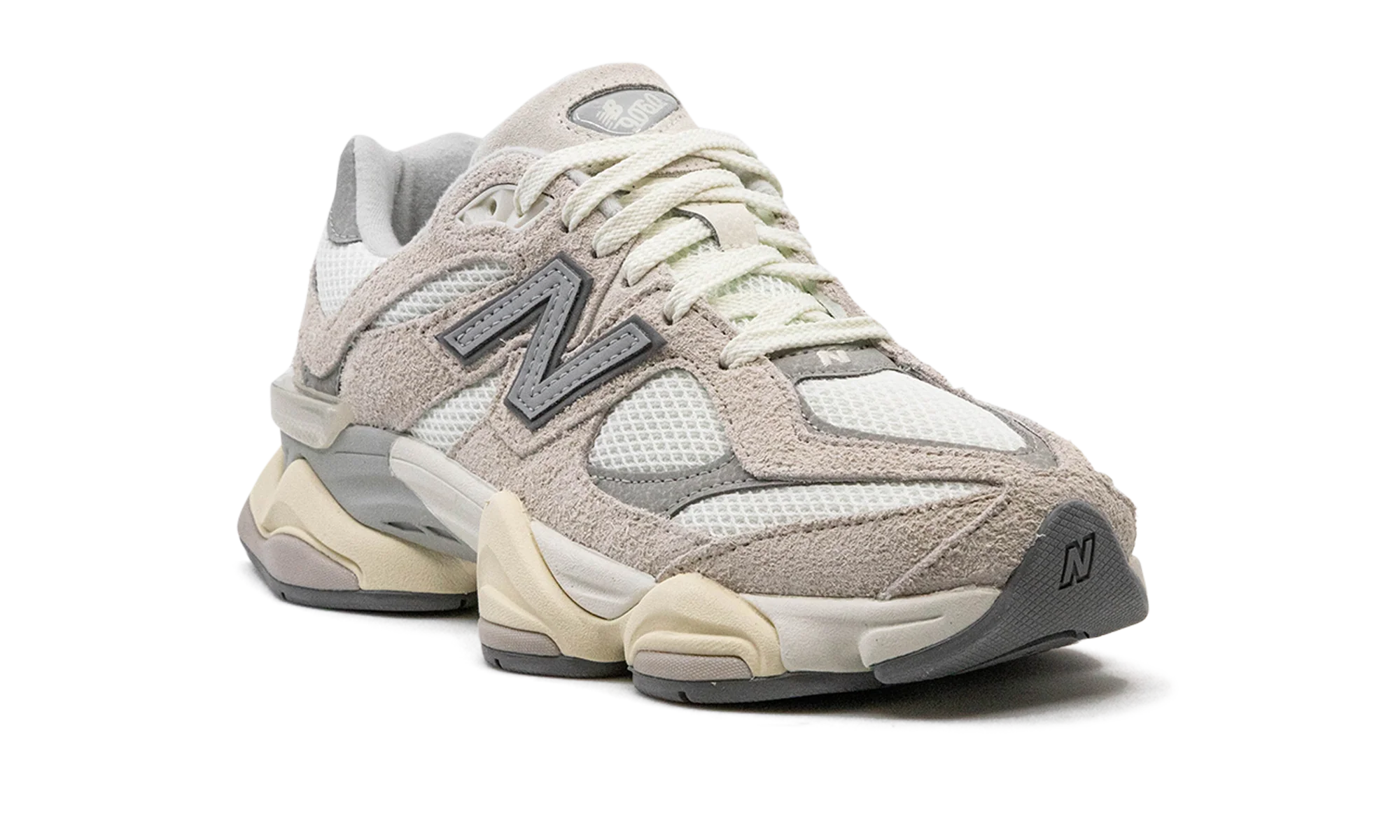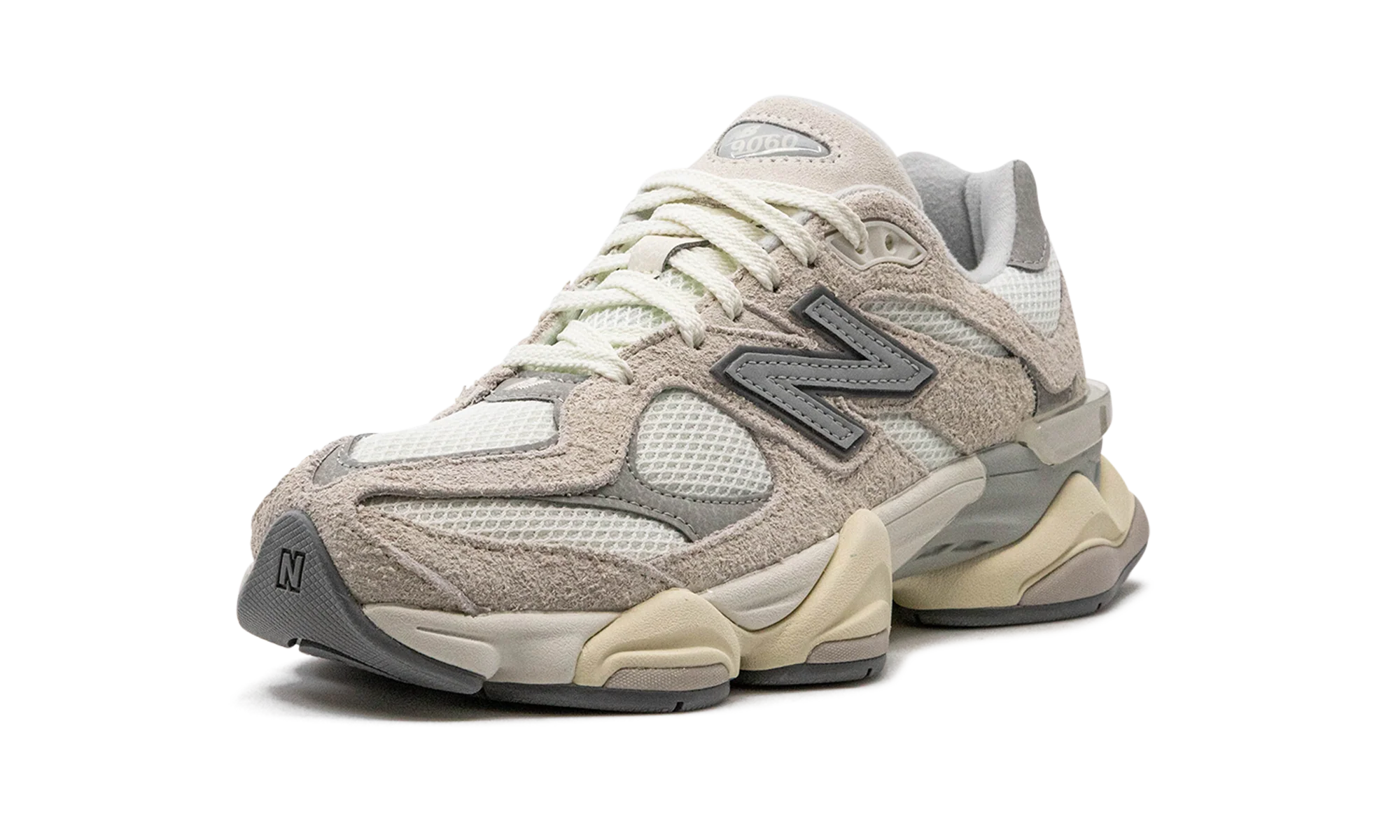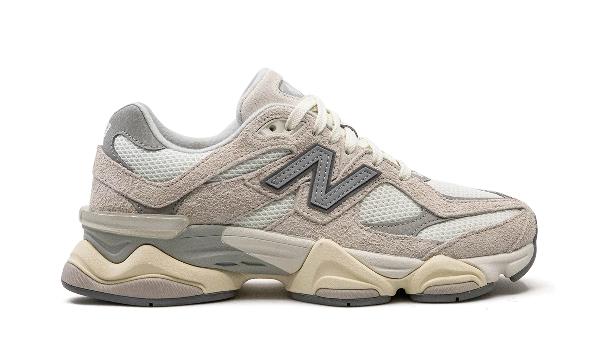 Discover the easy-to-style New Balance 9060 “Sea Salt/Rain Cloud.” This popular casual shoe, first released in 2022, features a Sea Salt-colored mesh upper with light grey (Rain Cloud) suede overlays. It’s accented with a grey “N” logo and classic “NB” branding. The chunky cream, grey, and white rubber midsole completes the look. Suede Pack – Sea Salt
