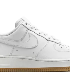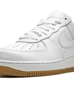 The Nike Air Force 1 Low ‘07 “White/Gum” is a versatile and understated look for the venerable shoe known as the “Uptown” and “AF1” in sneaker circles. Playing on the iconic “White on White” colorway, the “White/Gum” features a clean white leather upper with tonal overlaid leather panels and Swoosh branding. Perforations on the toe and mid-panel allow for constant airflow. An embroidered “Nike Air” logo is stitched onto the heel and printed on the white nylon tongue tag. A small “AF1” dubrae a the bottom of the laces furthers the retro styling of the shoe. “Air” insignia appears on the lateral side of the heel of the white midsole. A contrasting gum outsole finishes off the look. White / Gum