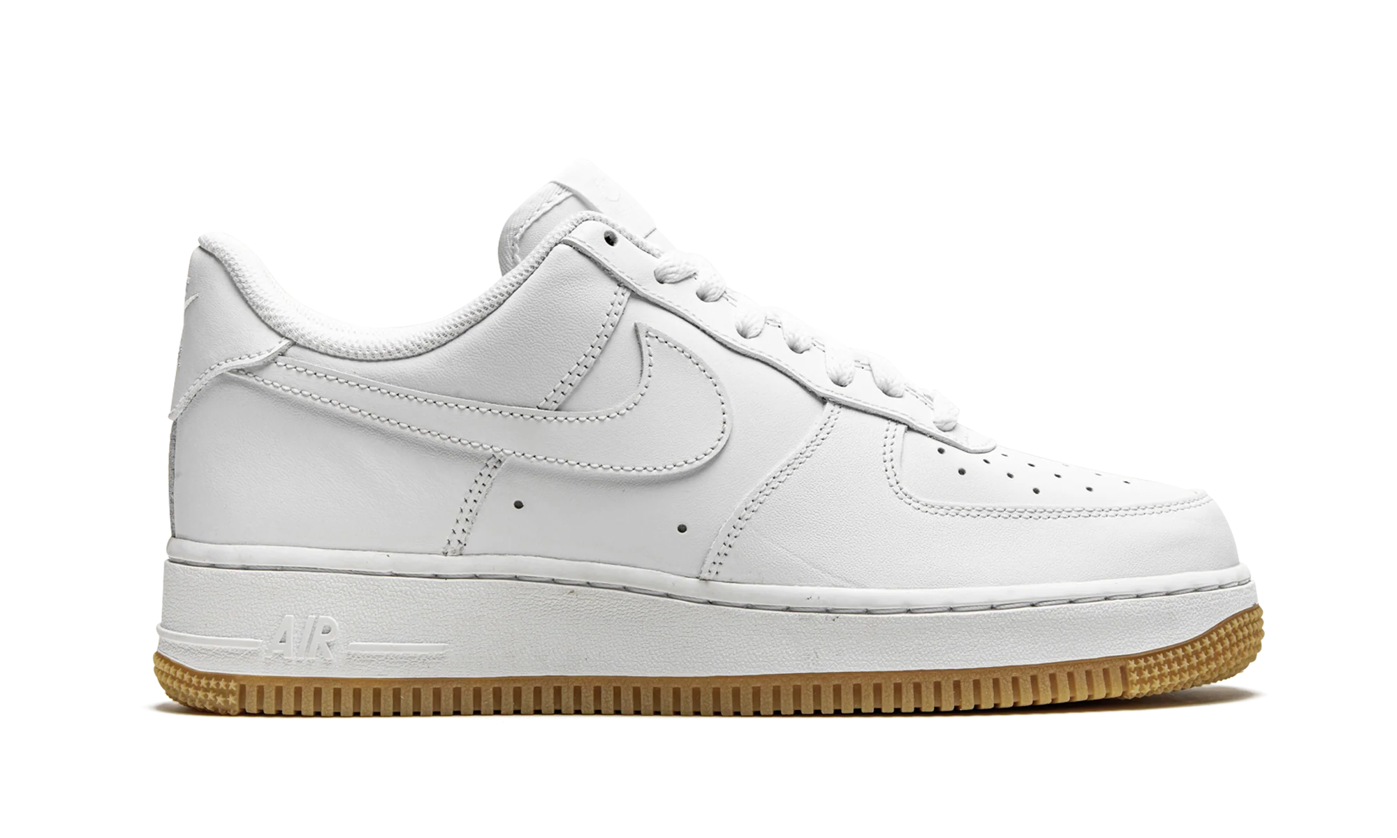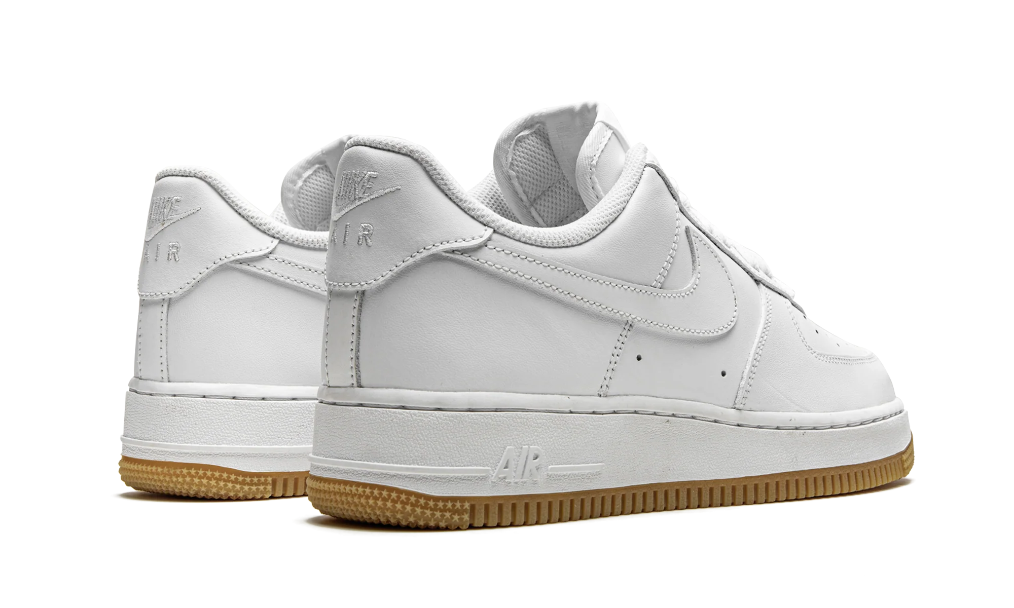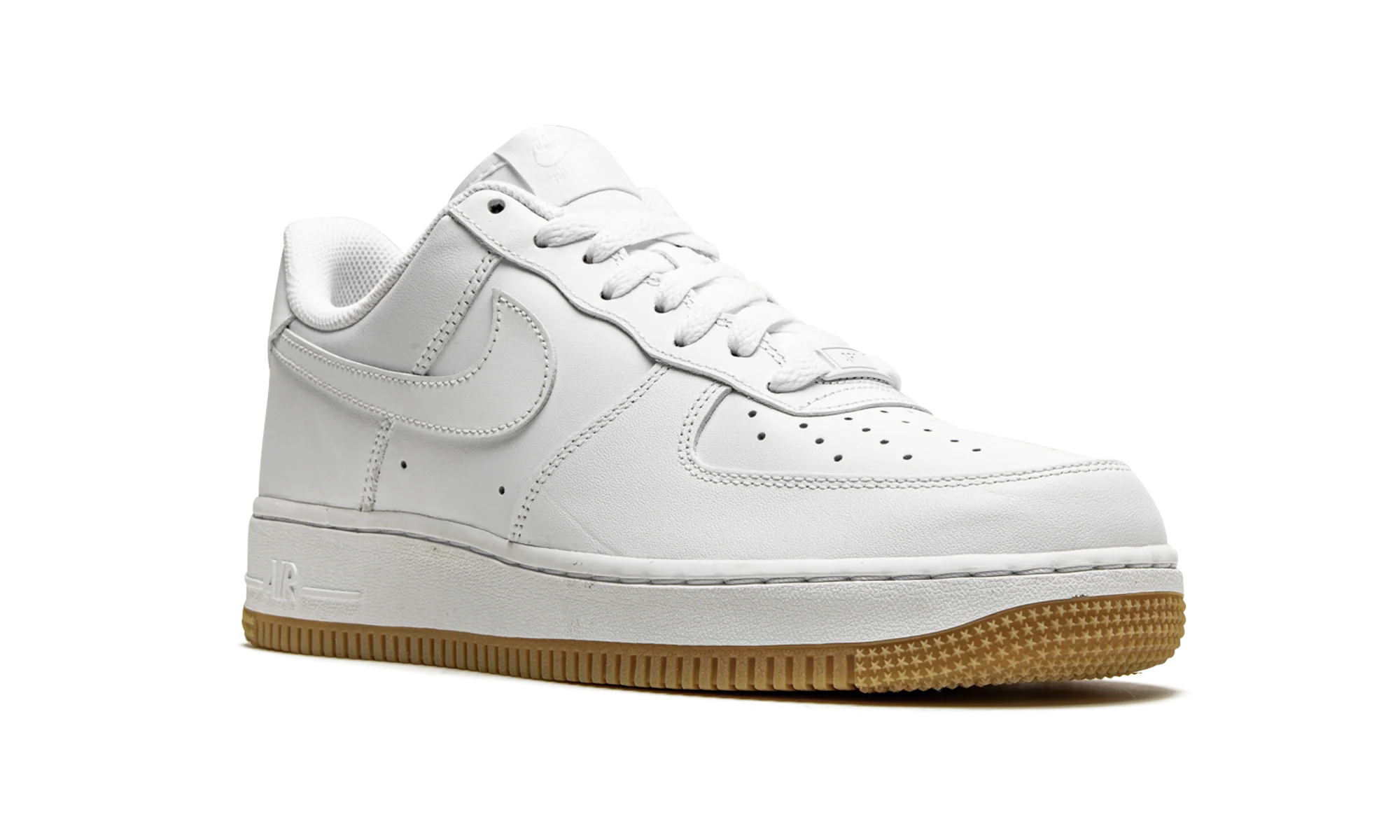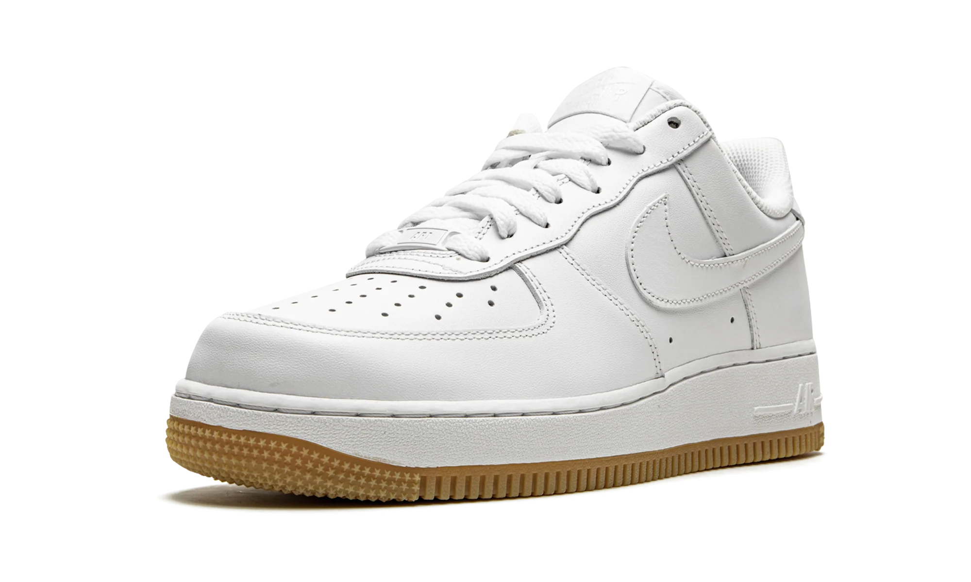 The Nike Air Force 1 Low ‘07 “White/Gum” is a versatile and understated look for the venerable shoe known as the “Uptown” and “AF1” in sneaker circles. Playing on the iconic “White on White” colorway, the “White/Gum” features a clean white leather upper with tonal overlaid leather panels and Swoosh branding. Perforations on the toe and mid-panel allow for constant airflow. An embroidered “Nike Air” logo is stitched onto the heel and printed on the white nylon tongue tag. A small “AF1” dubrae a the bottom of the laces furthers the retro styling of the shoe. “Air” insignia appears on the lateral side of the heel of the white midsole. A contrasting gum outsole finishes off the look. White / Gum