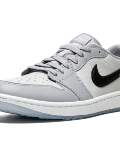 The Air Jordan 1 Low Golf “Wolf Grey” is an alternate variation of Michael Jordan’s first signature shoe designed for golf. The Jordan 1 Low Golf in “Wolf Grey” mimics the color block of the Dior x Air Jordan 1 Low OG from 2020, one of the most desirable sneaker collaborations in history. The shoe features white leather on the perforated toe and mid-panel with contrasting Wolf Grey leather on the overlaid panels. A black leather Swoosh is found on both sides. On the back, white “Wings” branding brings a classic, vintage-inspired look to the shoe. Small nubs on the outsole provide traction on a golf course. Release date: January 20, 2022