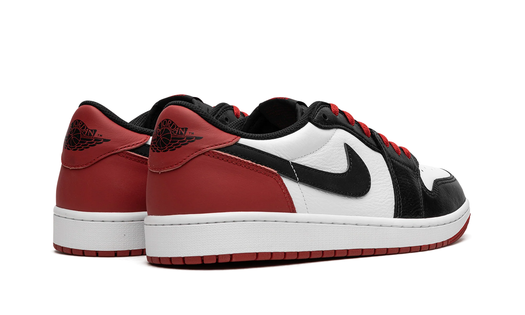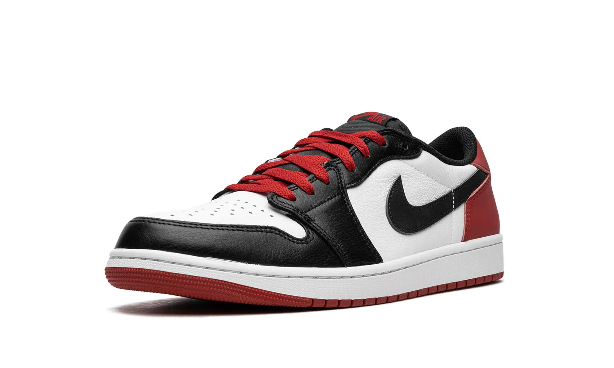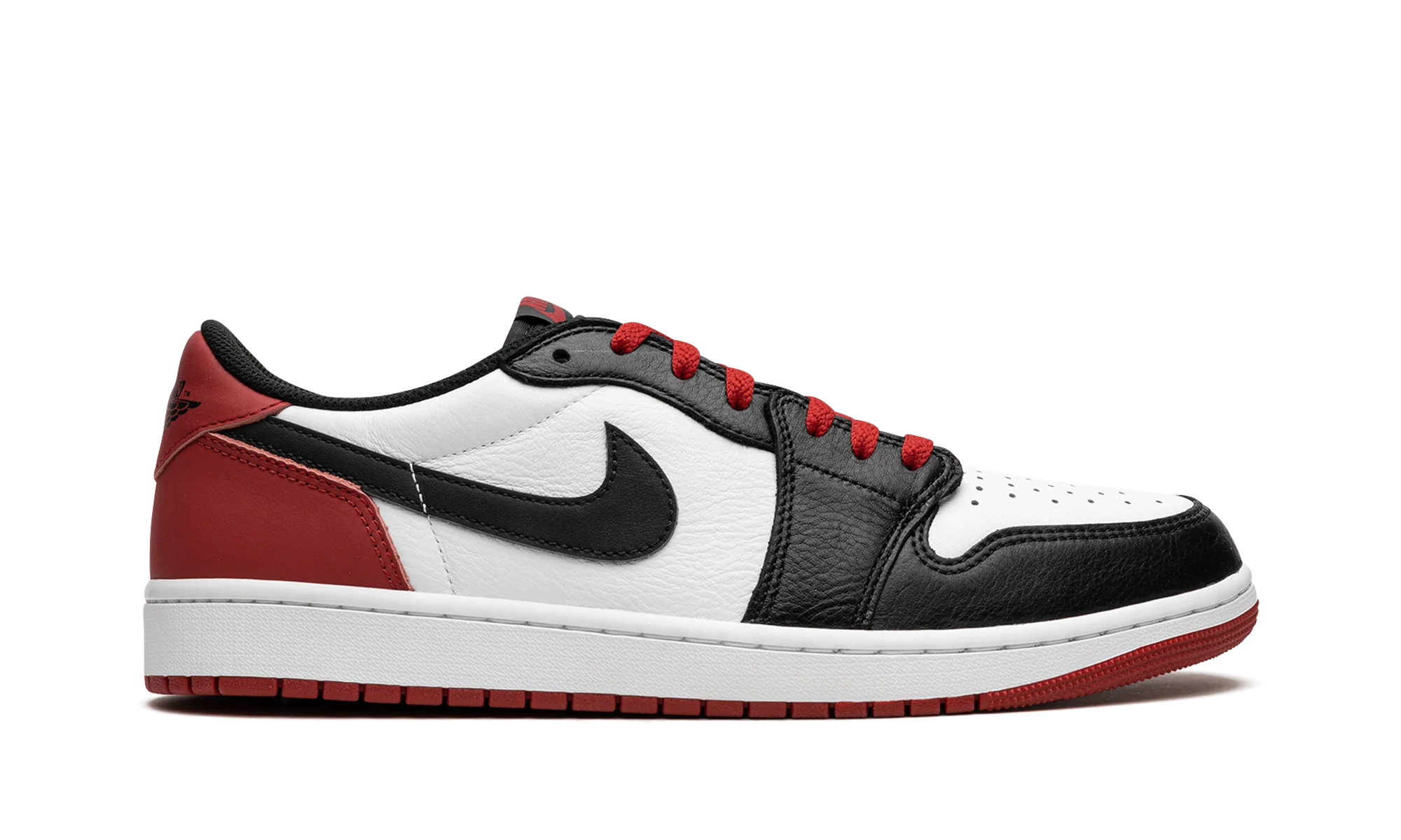 The Air Jordan 1 Low OG Black Toe is a colorway of the classic low-top retro basketball shoe that shows love to one of the models original styles. The Black Toe was an original colorway of the Air Jordan 1 High in 1985, and was worn by Michael Jordan with the Chicago Bulls during his rookie season in the NBA. Here, the colorway is transferred onto the Jordan 1 Low OG. The shoe features a white leather base with black leather overlays on the toe cap, forefoot, and eyelets. A black leather Swoosh logo appears on the sides. Varsity Red leather can be found on the heel, as can a black Wings logo on the heel tab. Classic Nike and Swoosh branding appear on the tongue tag. A white rubber midsole and black rubber outsole complete the look. Release date: July 28, 2023 Black Toe 2023