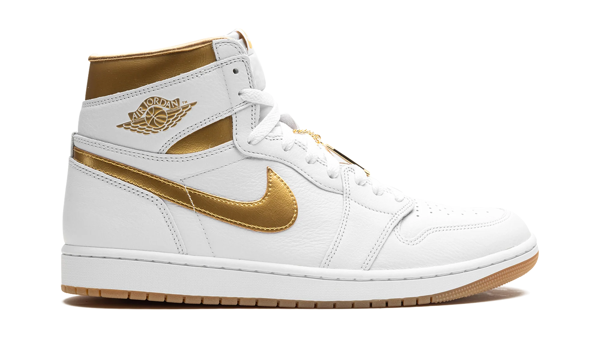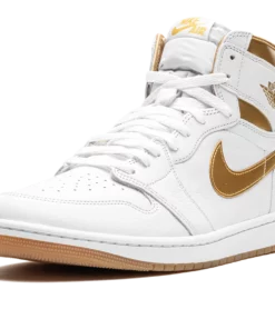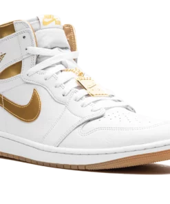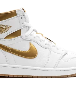 The Womens Air Jordan 1 High OG “Metallic Gold” is a womens-exclusive colorway of Michael Jordans first signature shoe designed in the same color block as the models Metallic collection from 1985. The colorway is complete with a white leather construction with metallic gold details including the side Swooshes, Wings logo on the collar, and panels around the collar. The white rubber midsole and gold rubber outsole complete the clean and striking design for the iconic silhouette. Metallic Gold