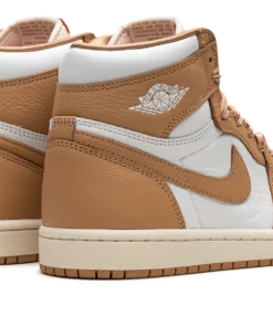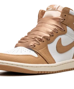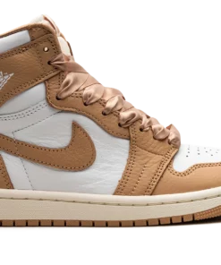 The Womens Air Jordan 1 Retro High OG “Praline” is a womens-exclusive colorway of the retro basketball sneaker inspired by luxury handbags. The striking design features a white leather base with tan leather overlays and a tan leather Swoosh on each side. Classic Wings branding appears on the collar and Nike Air and Swoosh logos are found on the tongue tag. The shoes satin-like ribbon-style laces are inspired by details on a handbag. Release date: September 13, 2023 Praline