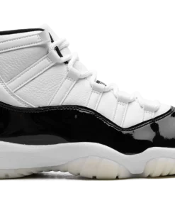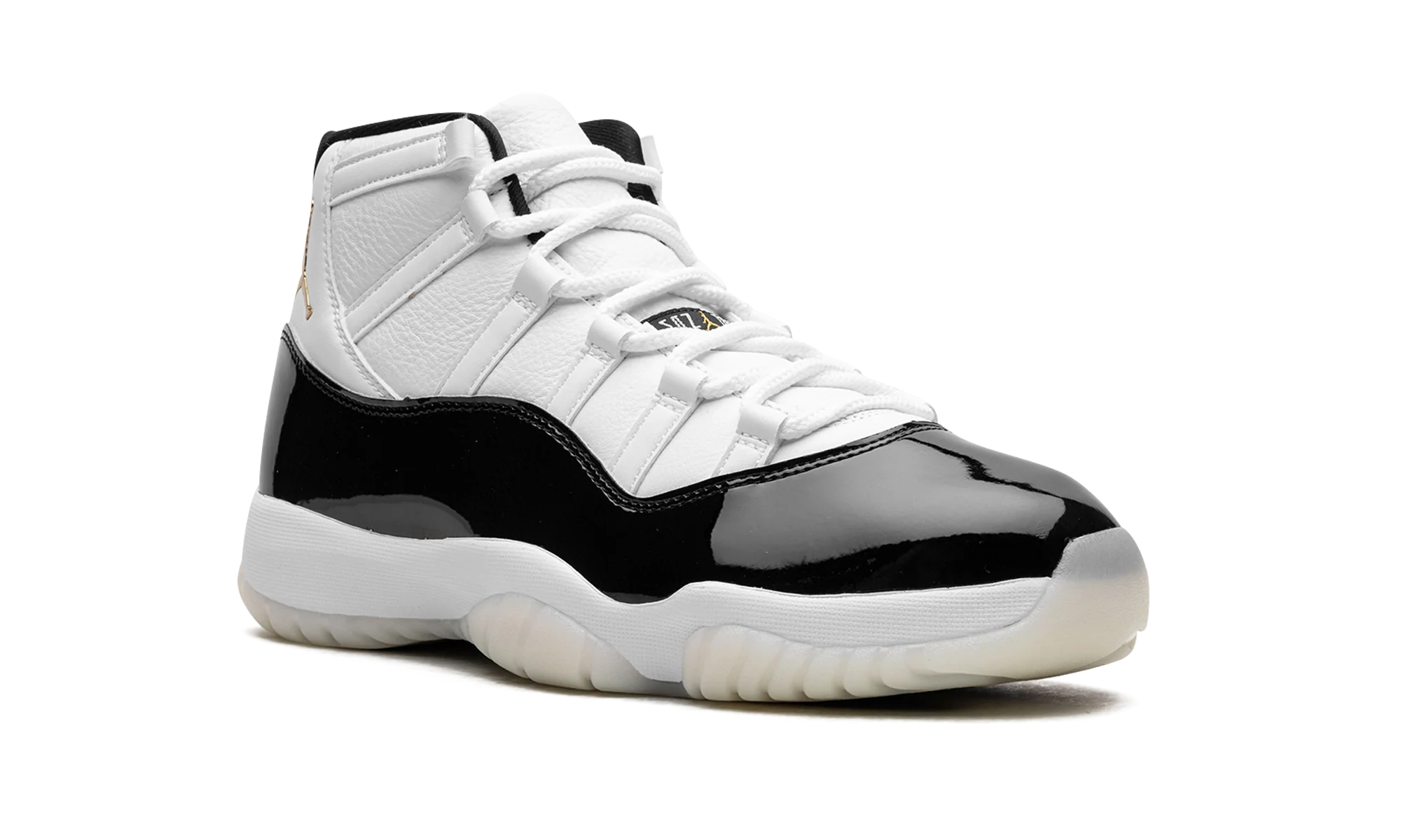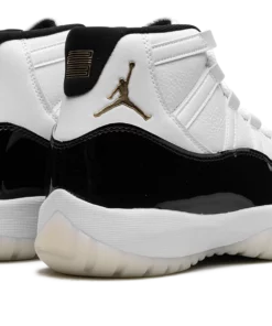 The Air Jordan 11 Gratitude is the modern re-release of the colorway of Michael Jordans eleventh signature shoe that originally released as part of the Defining Moments Pack from 2006. Also nicknamed the DMP 2023 colorway, this Jordan 11 is based on the retro basketball sneakers original Concord colorway that was worn by Jordan with the Chicago Bulls throughout the teams historic run during the 1995-96 NBA season. The upper features a white leather construction, instead of the original DMP colorway’s ballistic mesh build. A glossy black patent leather mudguard contrasts the shoes neutral base. Metallic Gold Jumpman branding is found on the collar while Jumpman detailing appears across the white mesh tongue. Underfoot, the white foam midsole and translucent rubber outsole complete the look. Release date: December 9, 2023 Gratitude