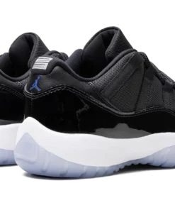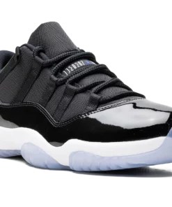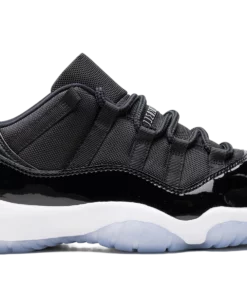 The Air Jordan 11 Low “Space Jam” is the beloved colorway of the retro basketball sneaker that originally appeared on the models high-top shoe beginning in 2000. The Jordan 11 Low Space Jam signals the first time the iconic colorway has appeared on Michael Jordans eleventh signature shoe in low-top form. Just like the original style, the Jordan 11 Low features a black ballistic mesh construction and shiny black patent leather mudguard. Jordan Jumpman detailing is seen on the black mesh tongue. A small Jumpman is seen in white on the heel. Underfoot, the white foam midsole and icy translucent blue rubber outsole complete the look. Space Jam