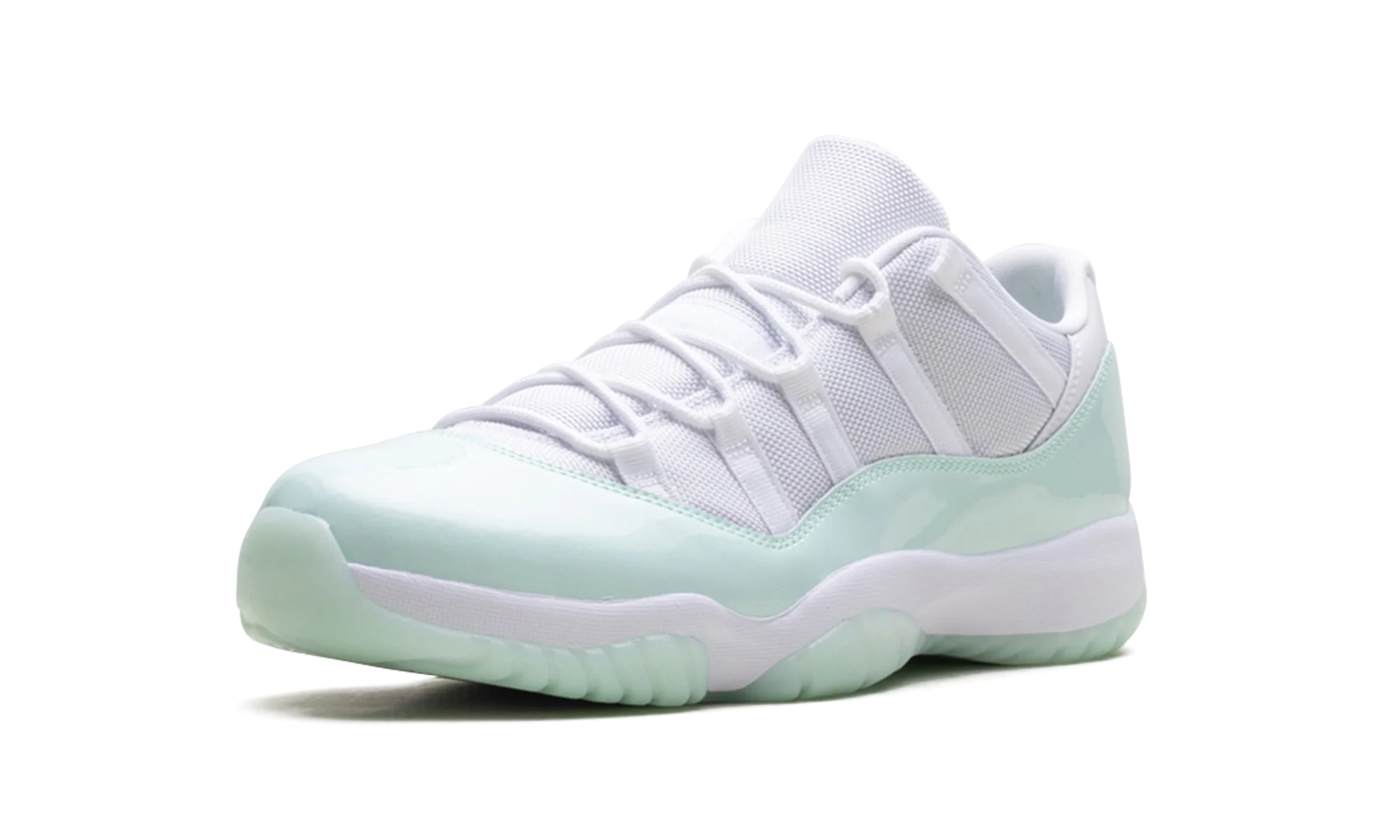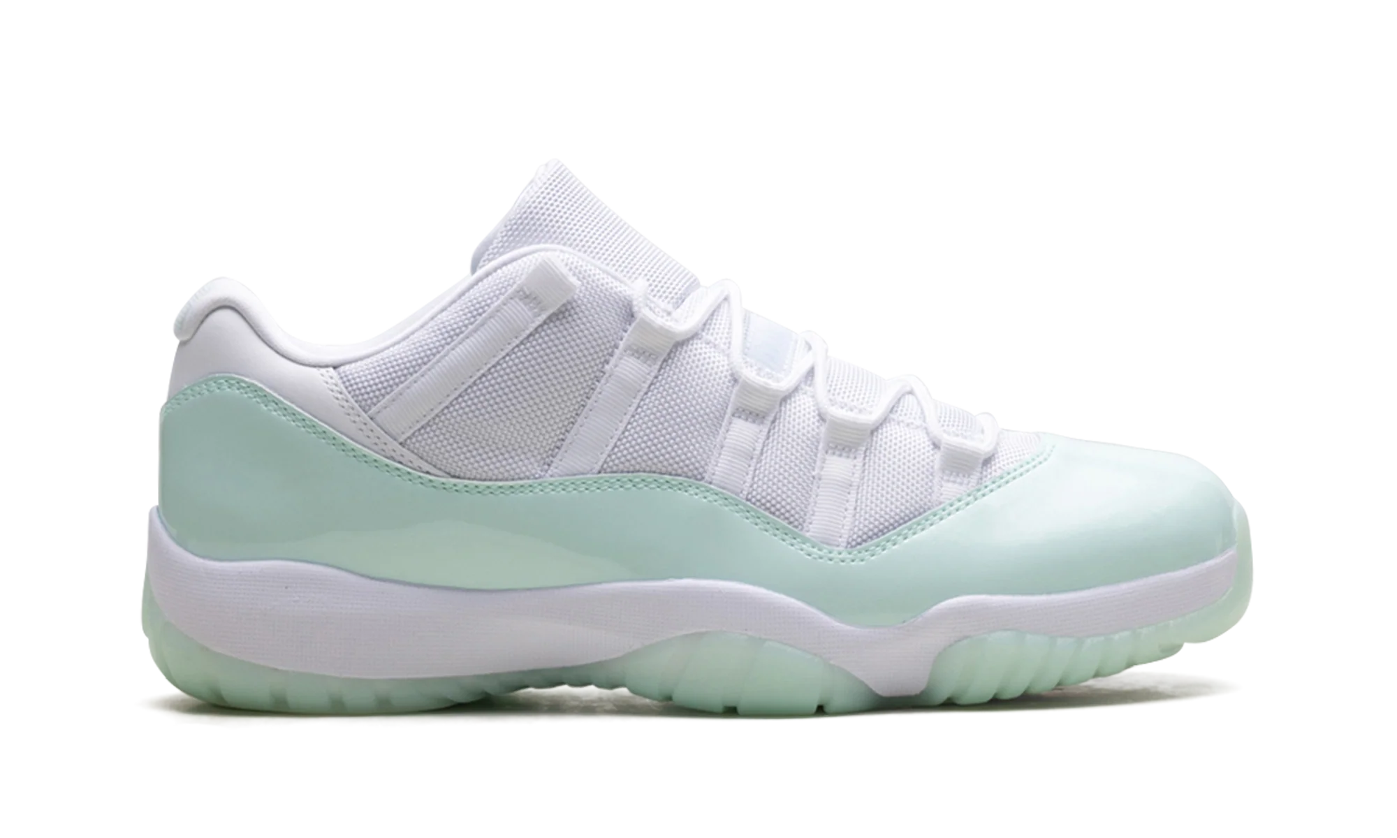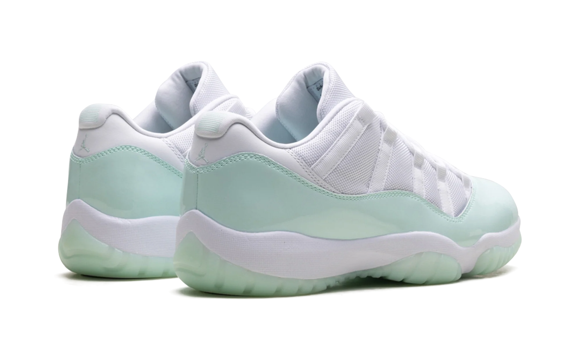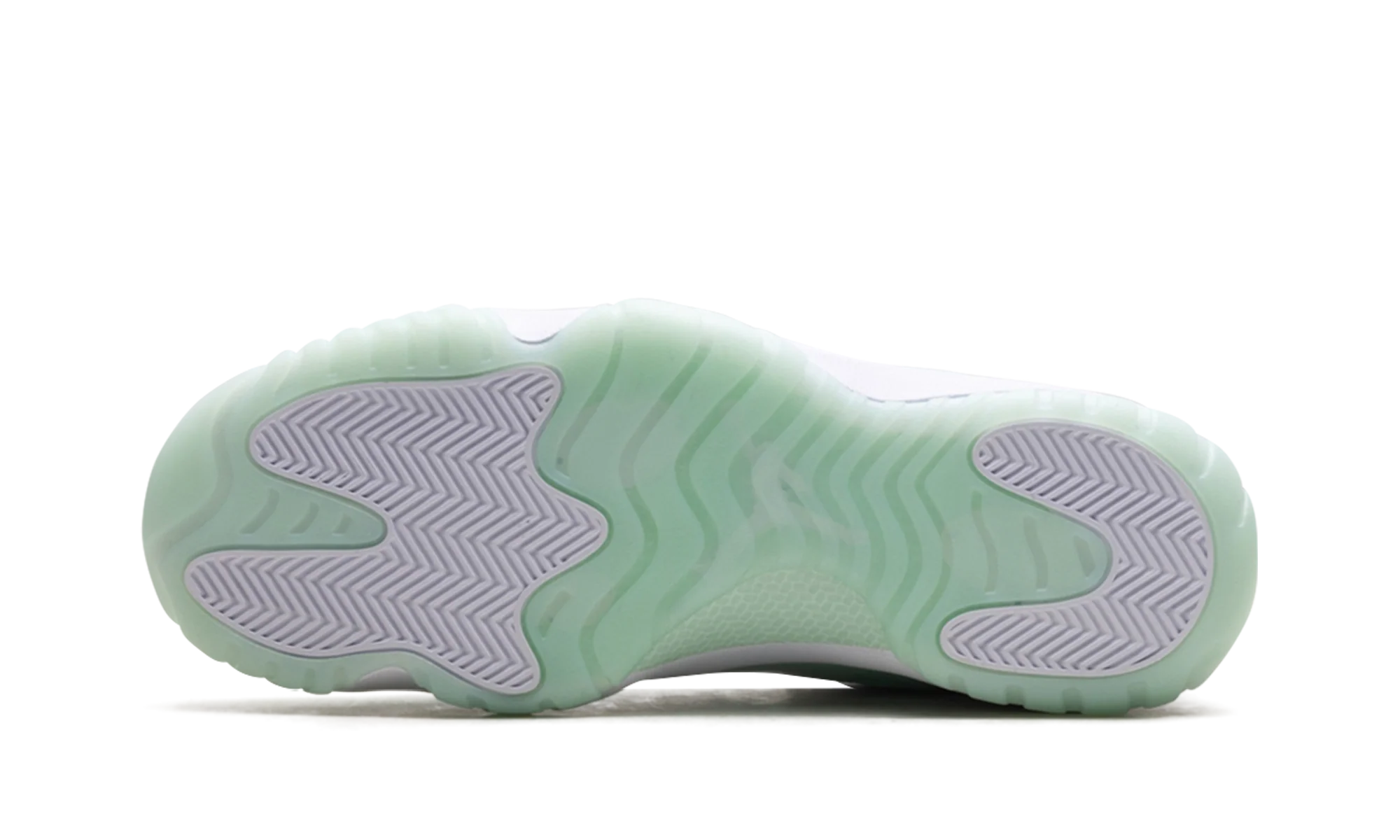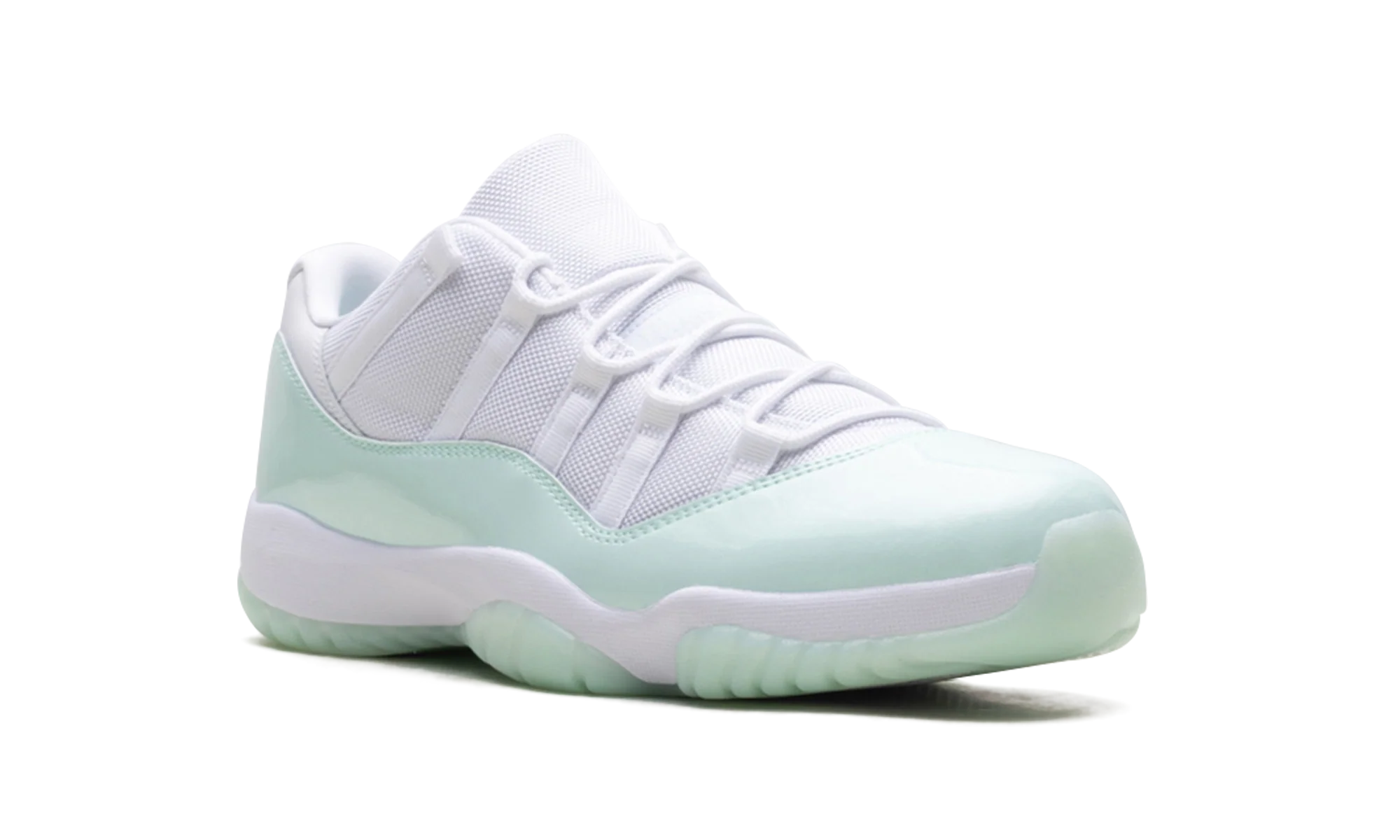 Step out in fresh style with the women’s Air Jordan 11 Low “Igloo.” The crisp white upper is beautifully contrasted by a vibrant Igloo green patent leather mudguard and a matching translucent outsole. This clean and striking colorway, combined with the AJ11’s unmistakable design, makes for a chic and eye-catching statement sneaker.