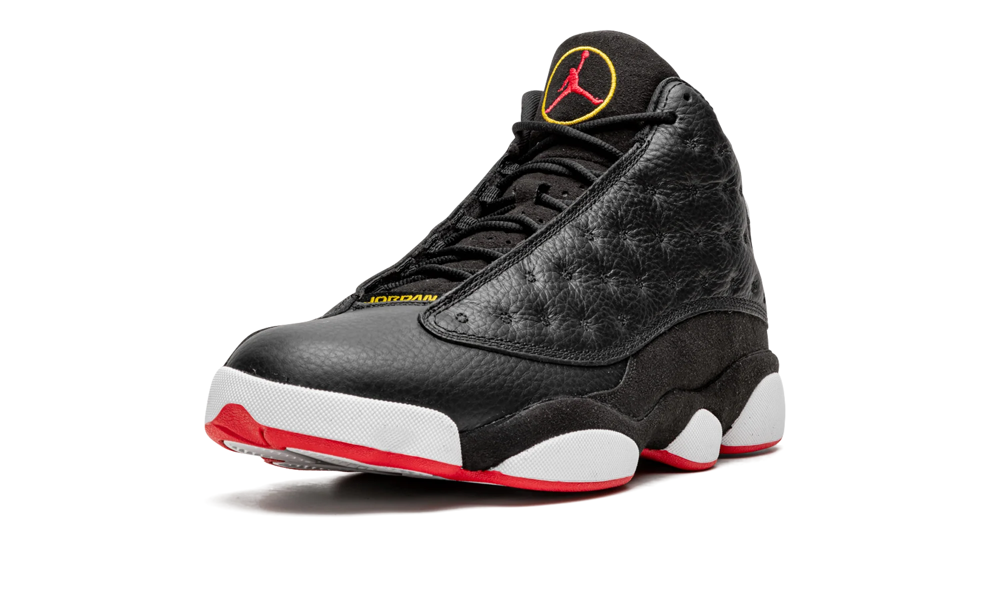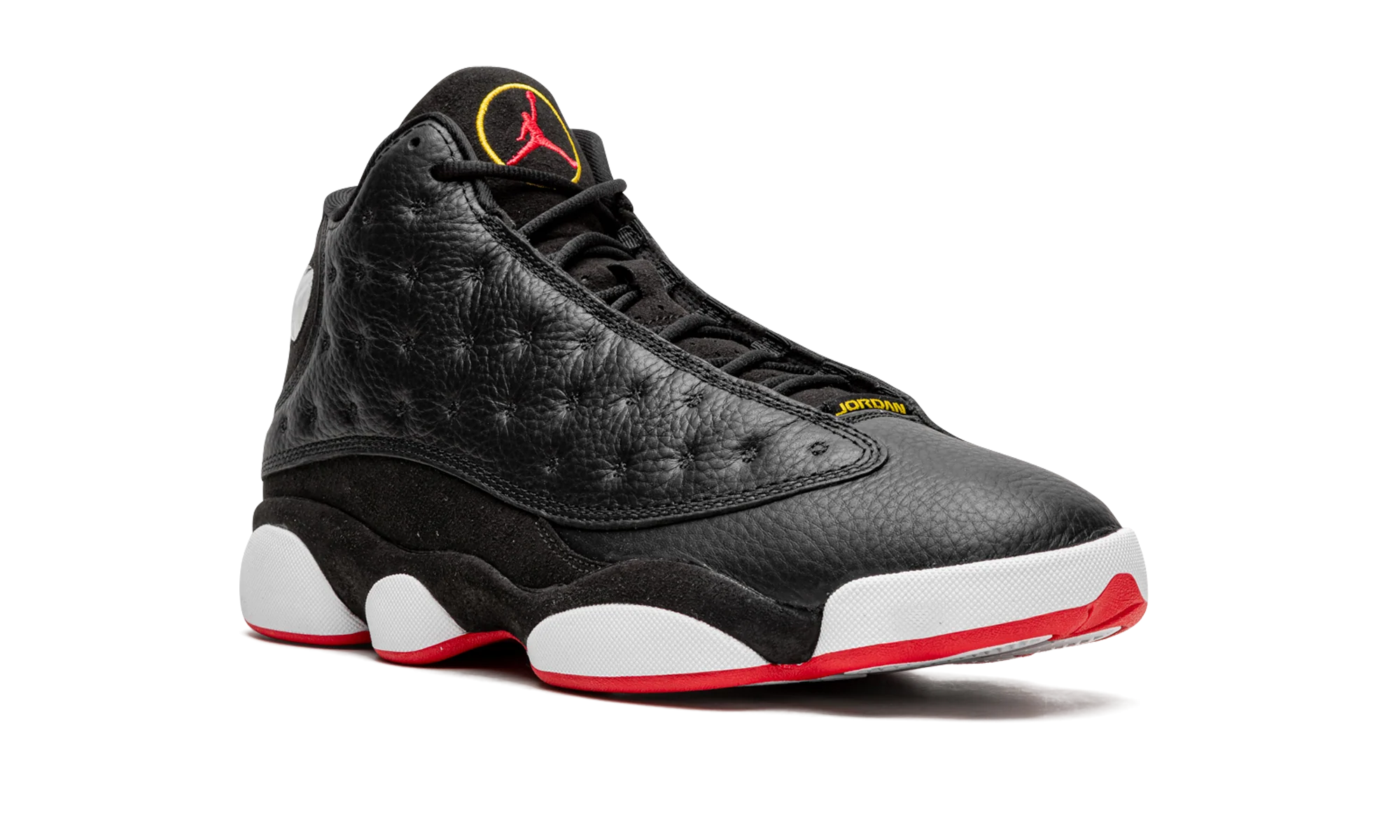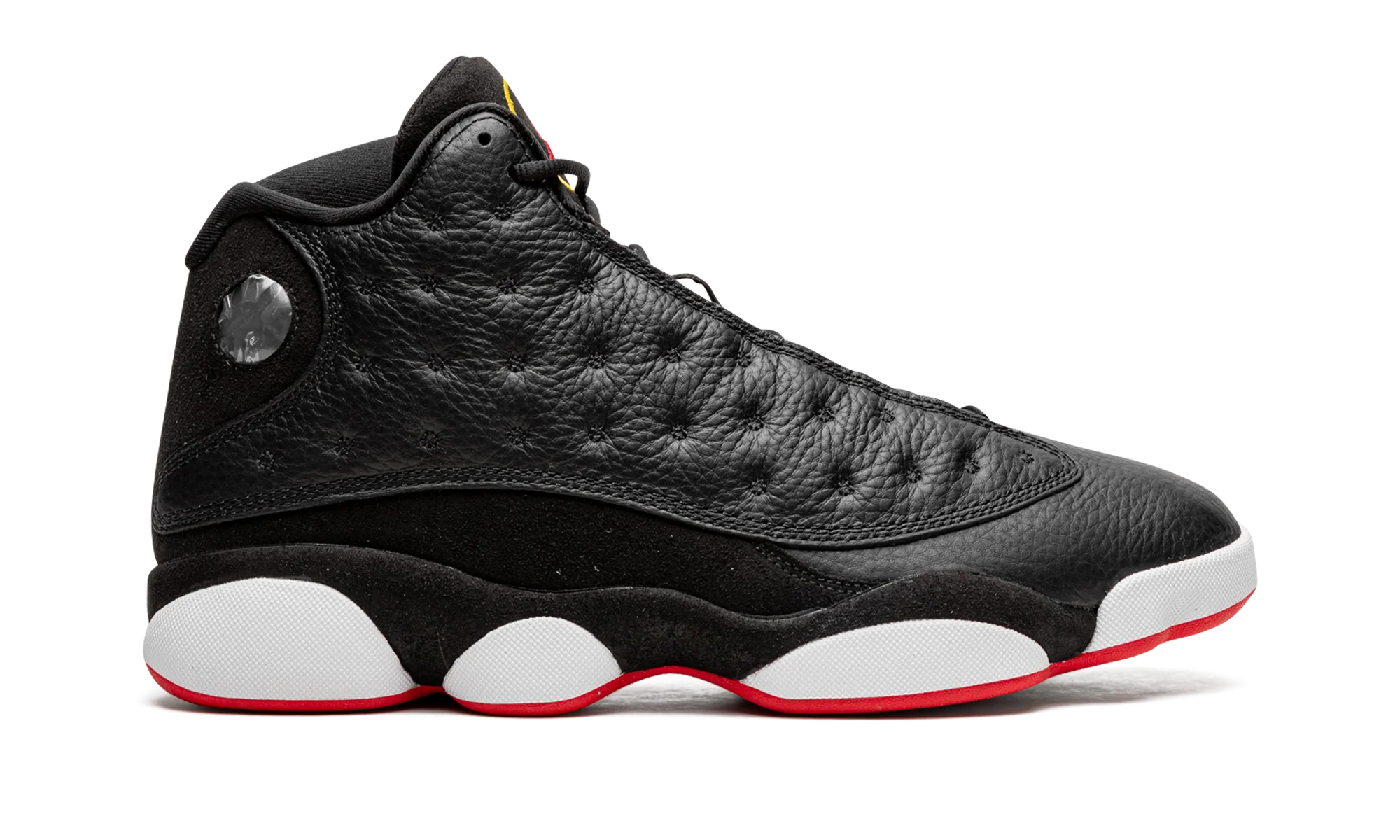 The Air Jordan 13 Playoffs 2023″ is the modern re-release of a popular, original colorway of Michael Jordans thirteenth signature shoe. The Jordan 13 Playoffs was debuted by Jordan during the 1998 NBA All-Star Game before it was eventually worn by His Airness during the Chicago Bulls memorable run during the 98 NBA Playoffs. The 2023 version of the Playoffs is a true one-to-one remaster of the original iteration of the shoe that was released in 1998. The colorway features a dotted black leather upper, a black leather toe, and black suede mudguard. A holographic, panther-eye-inspired emblem is found on the lateral side of the collar. Classic Jumpman branding appears in red within a yellow embroidered circle on the tongue. Jordan detailing is found on the vamp. White midsole walls complete the look of this classic sneaker. Release date: February 18, 2023 Playoffs 2023