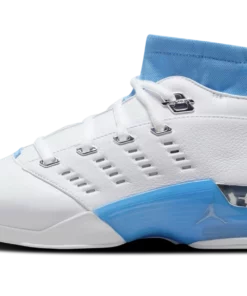 The Air Jordan 17 “University Blue” is an original colorway of Michael Jordan’s seventeenth signature shoe inspired by his alma mater, the University of North Carolina, that was reissued in 2024. Originally released in 2004, the Jordan 17 Low returned as a retro sneaker in the “University Blue” or “Carolina” colorway for the first time in 2024. The upper has a white leather construction and a University Blue-colored Dynamic Fit inner sleeve that provides optimal support for the wearer. The heel of the Jordan 17 has a distinctive chrome strip, while a unique lace system helps ensure a lockdown fit. Underfoot, Jordan Brand supplies the Air Jordan 17 Low with a full-length shank plate and a rear TPU heel stabilizer for added support.