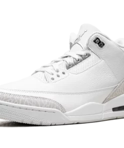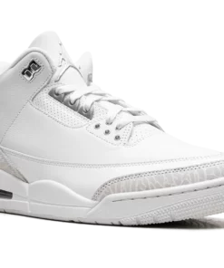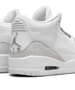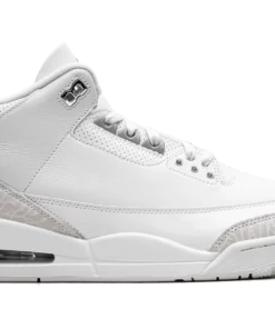 Elevate your look with the pristine style of the Air Jordan 3 “Pure Money.” The all-white leather upper, complemented by subtle metallic silver accents on the eyelets and branding, offers a clean and luxurious aesthetic. The iconic elephant print adds a touch of texture, making this versatile sneaker a fresh statement piece.