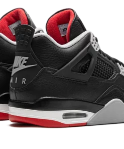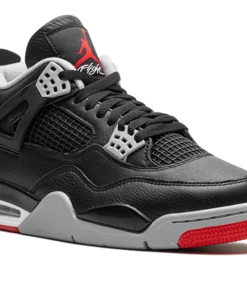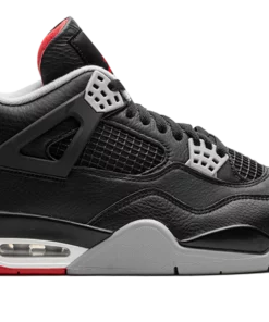 The Air Jordan 4 “Bred Reimagined” is an iconic and original colorway of the fourth Air Jordan sneaker that replicates the models original design. The Bred Reimagined was released by Jordan Brand in February 2024 to celebrate the legendary Jordan 4s 35th anniversary. Dressed in the same color block as the original version from 1989, the Bred Reimagined mimics the look of the OG Jordan 4 Bred with accurate-to-original panels, colors, and overall shape. However, the design does differ from the original Bred Air Jordan 4 by featuring a tumbled leather upper instead of the OGs nubuck construction. Cement Grey plastic eyelets contrast the look on the front of the shoe. On the back, Cement Grey Nike Air branding gives the sneaker a classic look. A red Jumpman and Flight branding in cursive appear on the tongue tag. A grey and white rubber midsole completes the look. Release date: February 17, 2024 Bred Reimagined