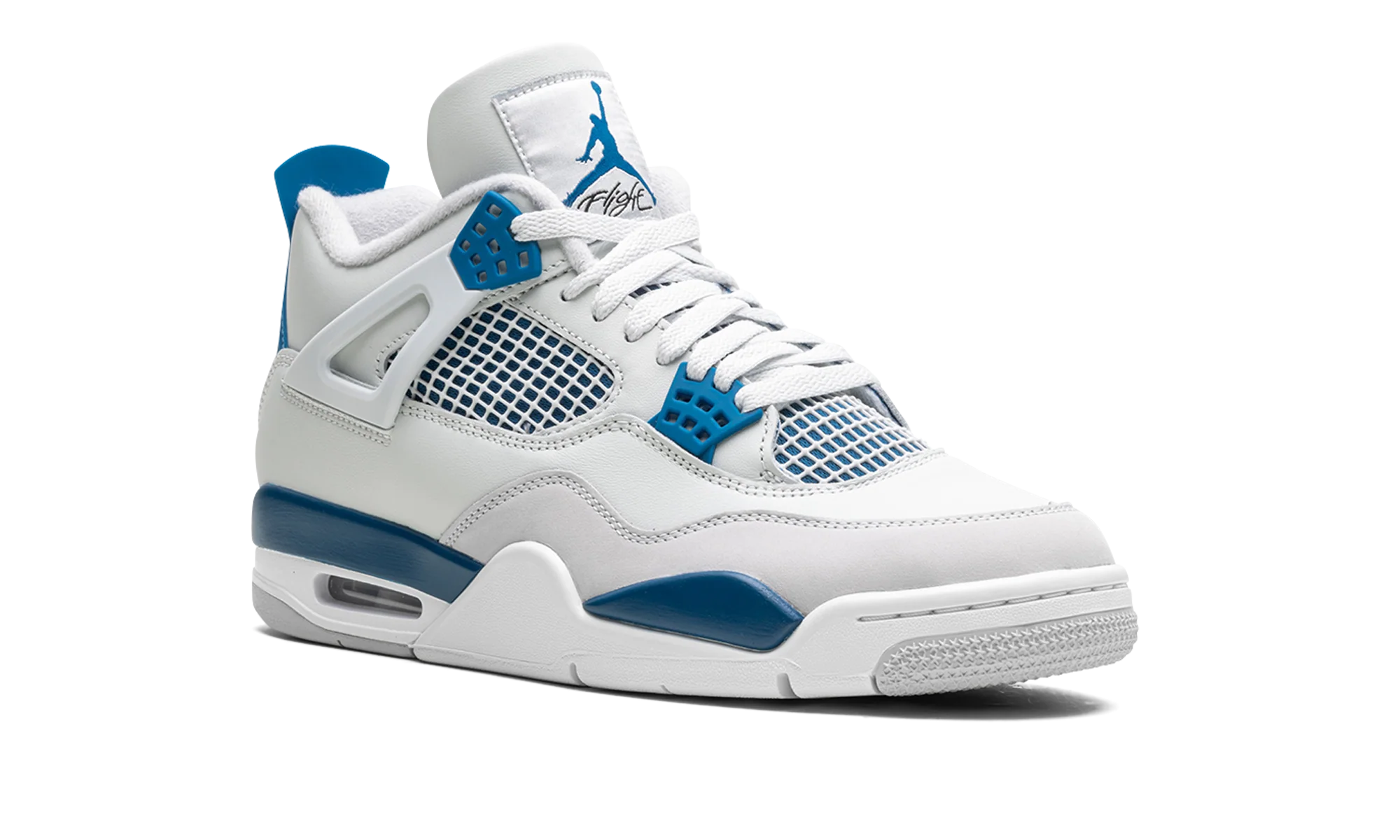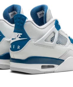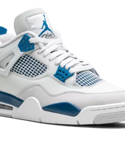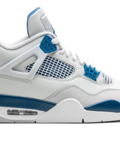 The Air Jordan 4 OG “Military Blue” is an original colorway of Michael Jordans fourth signature shoe that was re-released by Jordan Brand in May 2024. The Jordan 4 Military Blue is one of the retro basketball sneakers original colorways, and one of its rarest, too. The style was only released twice before, in 1989 and 2006, until it was brought back in 2024. The modern version of the Military Blue remains faithful to the original look, in that it features the same shape, color block, and Nike Air branding as the 89 version. The shoe has a white leather upper with a Neutral Grey overlay on the toe. Additional Neutral Grey accenting appears on the lace holder wings. White netting is layered over Military Blue mesh on the mid-panel and tongue. More Military Blue accenting comes into play on the mudguard and lace eyelets, and on the heel counter with Nike Air detailing. A blue Jumpman is found on the tongue. Underfoot, a white rubber midsole and grey rubber outsole complete the look. Release date: May 4, 2024 Military Blue