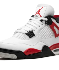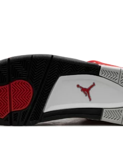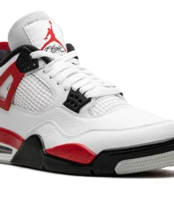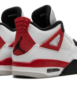 The Air Jordan 4 Red Cement is a colorway of the retro basketball shoe inspired by the Jordan 4s iconic White Cement style. The Red Cement Jordan 4 is designed similarly to the models original White Cement colorway, but with a few key differences. The Red Cement features red-based cement detailing while the White Cement has grey cement patterning. As for the rest of the design, the Red Cement Jordan 4 has a white leather upper with tonal leather overlays and white netting on the tongue and mid-panel. The black plastic eyelets are contrasted by Fire Red-based wings with a speckle pattern. The fiery red speckled pattern also appears on the shoes mudguard and heel counter. A black Jumpman can be found on the tongue and heel. Release date: September 9, 2023 Red Cement