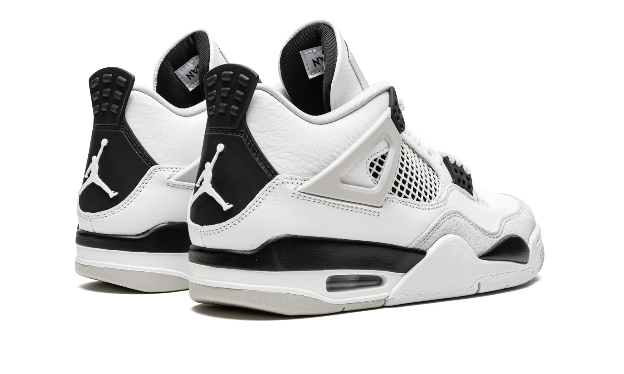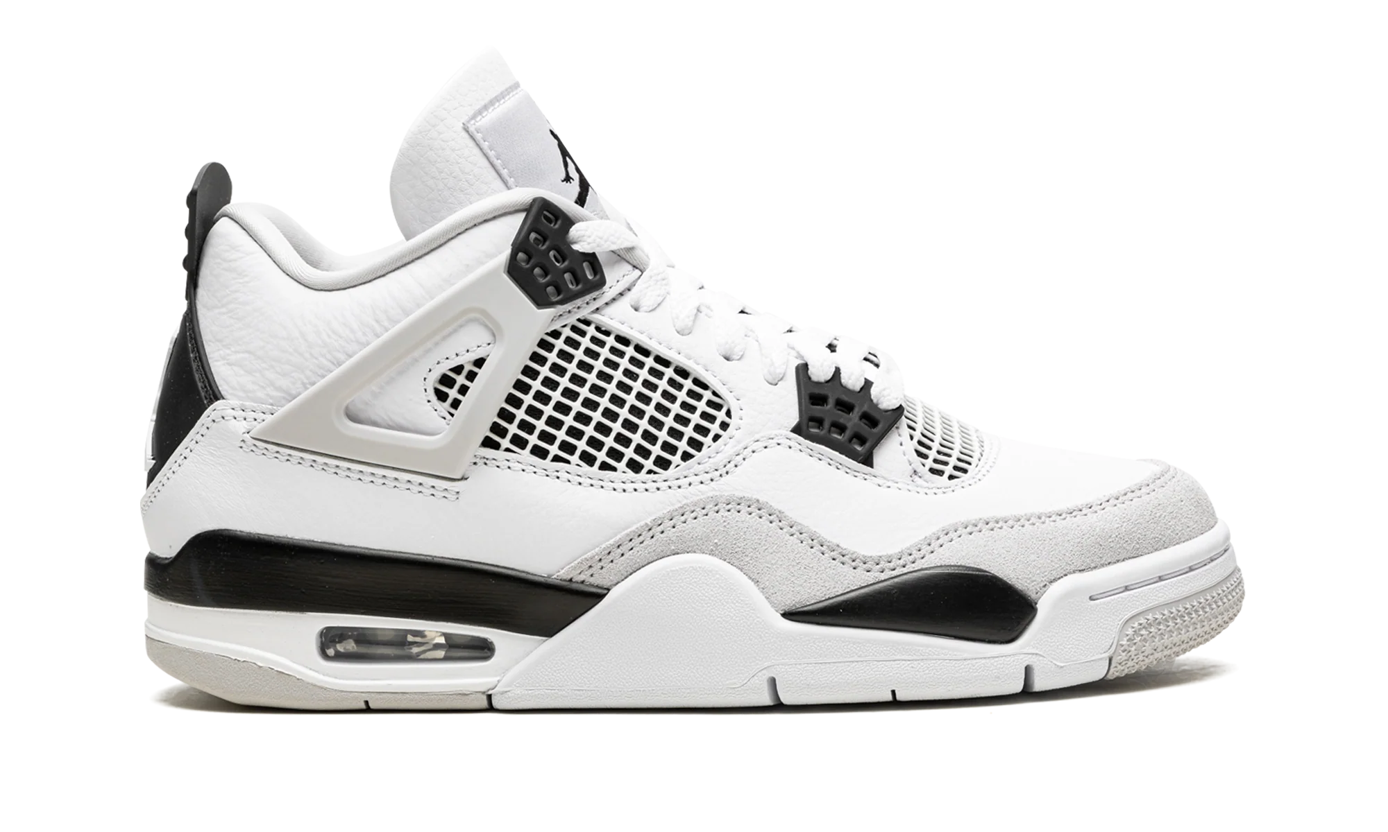 The Air Jordan 4 Military Black is a neutral colorway of the retro basketball shoe designed in the same color block as the models popular, original Military Blue style from 1989. The Jordan 4 Black Military is undoubtedly inspired by the Jordan 4 Military from 1989 as it features the same color design as the throwback colorway, just with black accents instead of blue. The shoes upper is constructed with a white leather base with grey suede on the forefoot overlay. The TPU eyelets and heel counter are accented in black. As are the underlays beneath the netting on the sides and on the tongue. Classic Jumpman logo detailing can be found on the heel and on the tongue tag. Release date: May 21, 2022 Military Black