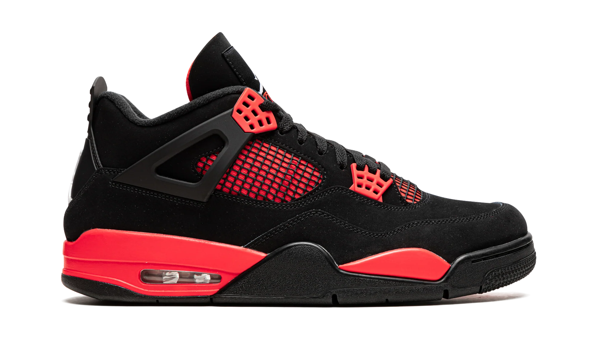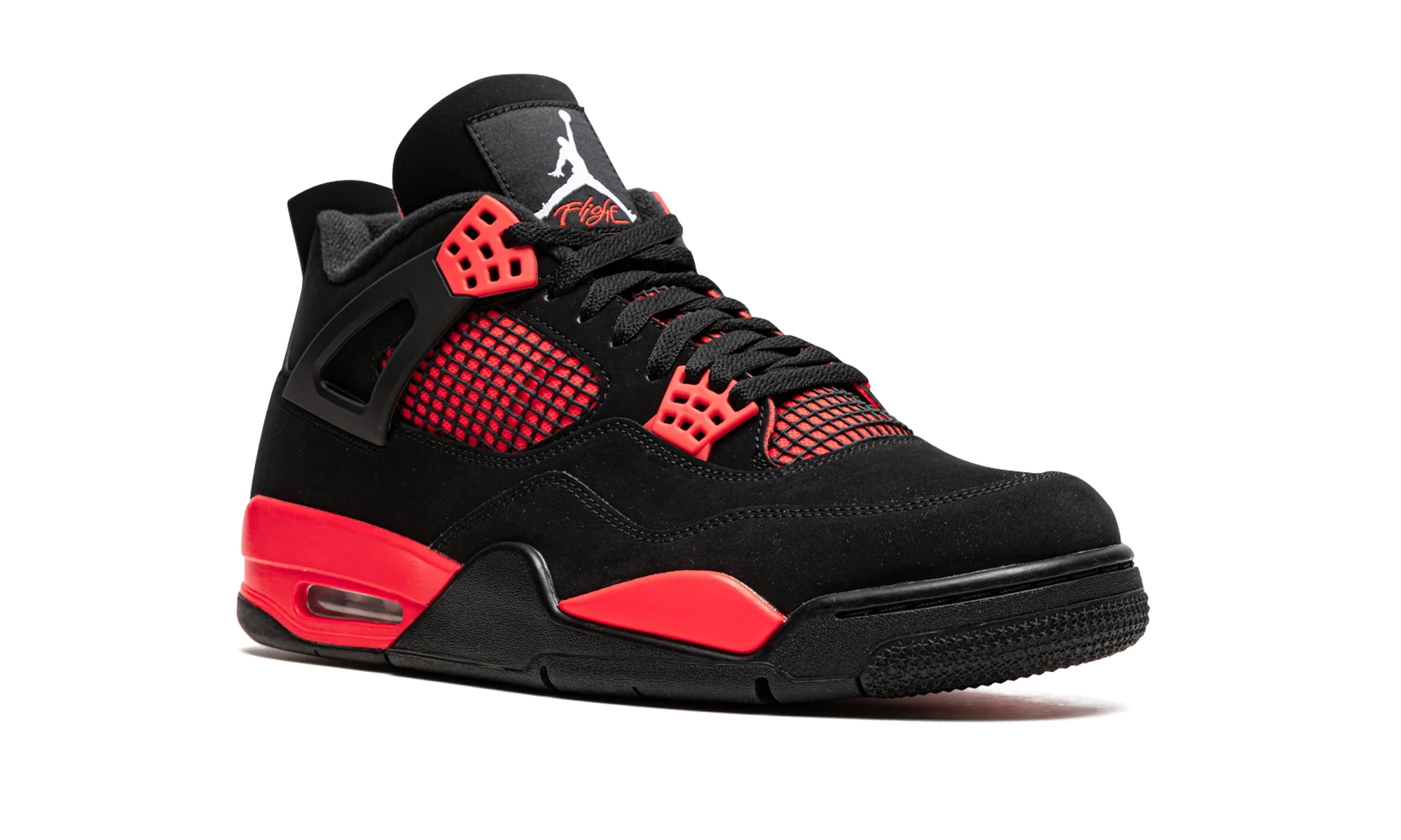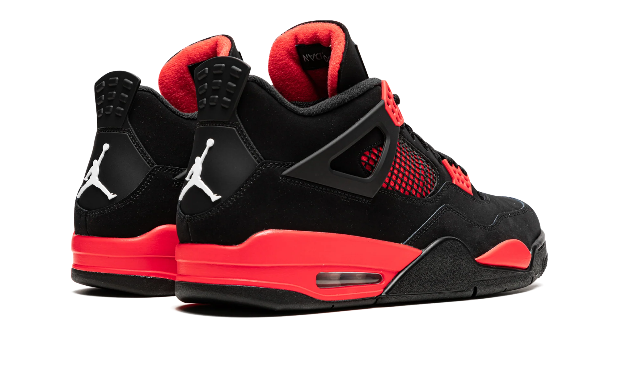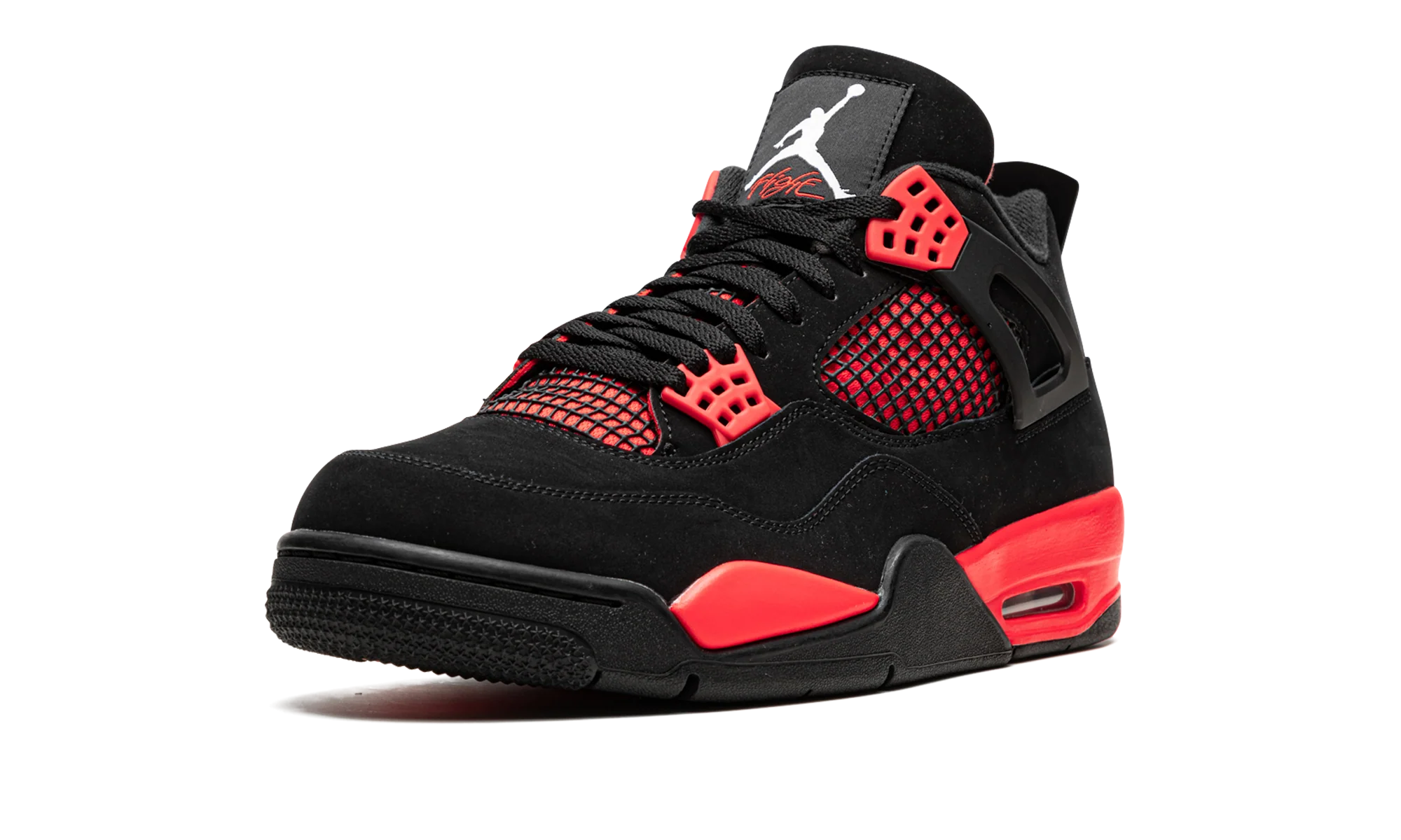 The Air Jordan 4 Red Thunder is an October 2021 release of Michael Jordans fourth signature shoe that draws comparisons to a popular look in the Air Jordan 4s line. The shoe were referring to is the Jordan 4s Thunder colorway from 2006s Thunder & Lightning pack that was released in limited quantities exclusively on Jumpman23.com, Jordan Brands former website. On the Red Thunder, the look mimics the original Thunder by substituting the latters yellow accents for red. The upper features a black synthetic nubuck base with red detailing beneath the mesh on the sides and tongue. Red wings lace holders contrast the neutral-colored upper. A white Jumpman appears on the heel. The look is brought together by the red painted midsole. A small clear Air unit in the heel puts the finishing touches on the Air Jordan 4 Red Thunder. Release date: October 2, 2021 Red Thunder