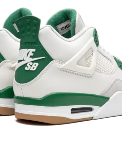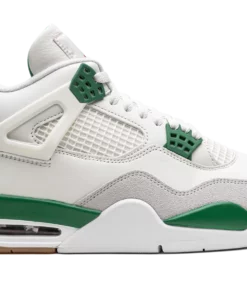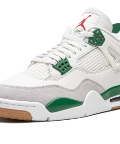 The Air Jordan 4 SB Pine Green is an alternate version of the retro basketball shoe thats updated with a performance skateboarding focus. A collaboration between Nike SB and Jordan Brand on Michael Jordans fourth signature shoe, the Jordan 4 SB is designed in a smooth white leather upper with a light grey suede overlay on the toe and forefoot. Contrasting Pine Green detailing appears on the heel counter with Nike SB branding and on the plastic eyelets. Tonal mesh is found on the mid-panel and tongue. A red Jumpman is located on the tongue. Release date: March 20, 2023 Pine Green
