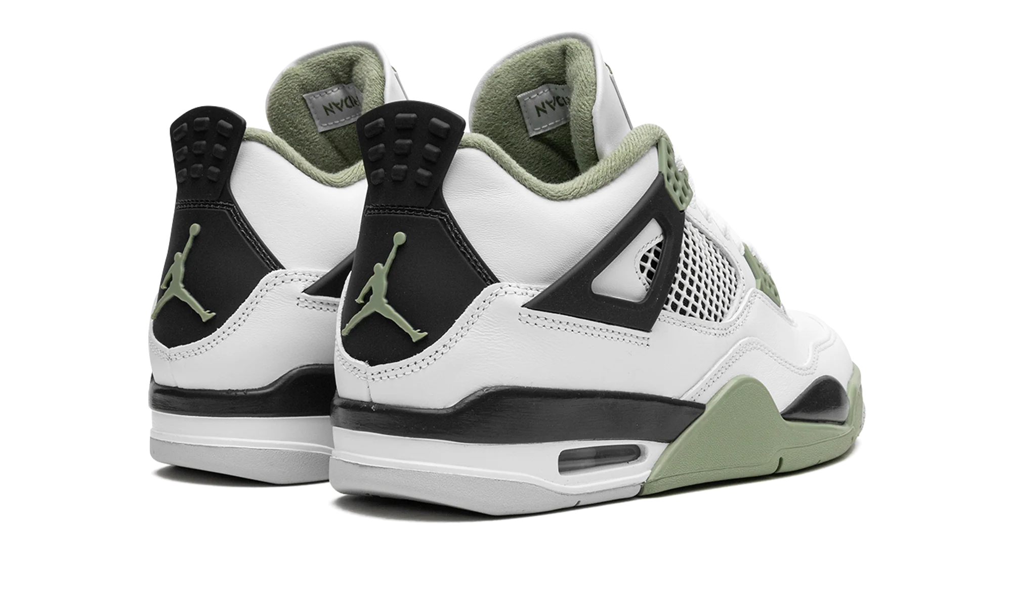 The Womens Air Jordan 4 Oil Green is a womens-exclusive colorway of the classic sneaker that adds to its impressive collection of releases. In the Oil Green colorway, this Jordan 4 is complete with a white leather construction with tonal netting on the tongue and mid-panel. Seafoam-colored eyelets are found on the sides of the shoe and additional Seafoam accenting appears on the Jumpman on the tongue and on the heel. The minty-green hue is also on the interior collar and on the rubber overlay on the toe and forefoot on the outsole. A visible Air bubble appears in the heel of the midsole. Release date: February 9, 2023 Seafoam Oil Green