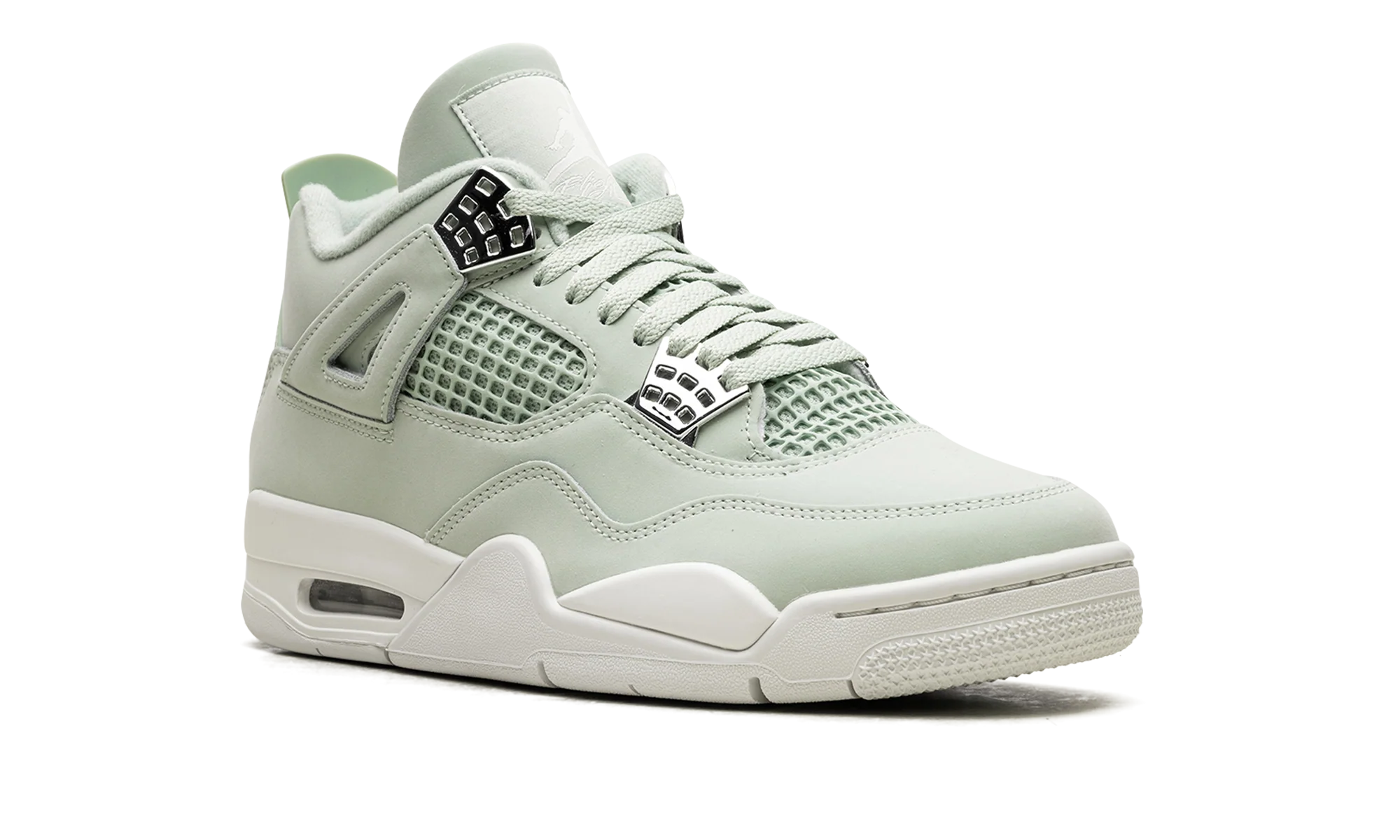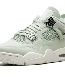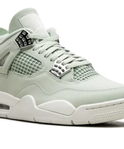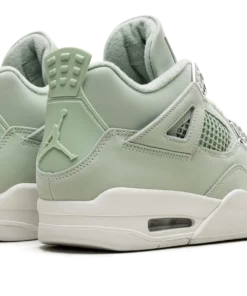 The Air Jordan 4 “Seafoam” is a women’s colorway of Michael Jordan’s fourth signature shoe. This Jordan 4 has a clean, light green upper that is balanced with a white midsole. The “Seafoam” AJ4 incorporates the signature design details of the Air Jordan 4, including the mesh panels and wings on the side. A tonal Jumpman logo appears on the heel. Abundance