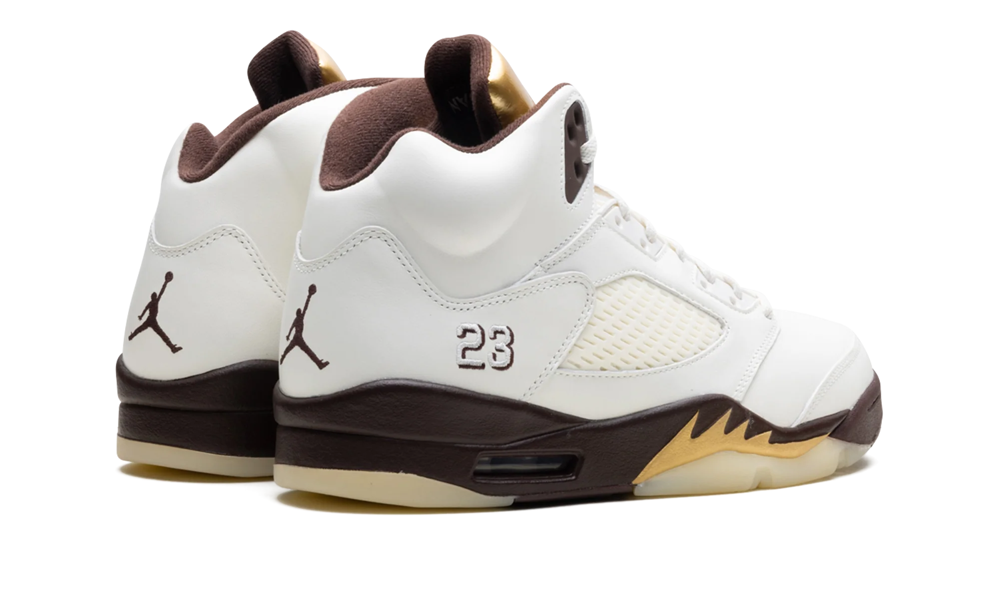 The Air Jordan 5 “Golden Ticket” is a women’s colorway of Michael Jordan’s fifth signature shoe. Taking inspiration from Charlie And The Chocolate Factory, the AJ5 “Golden Ticket” has a brown midsole and metallic gold accents reminiscent of a chocolate bar. This women’s Jordan 5 has all the sneaker’s signature design elements, including the fighter-jet inspired teeth around the midsole and the number “23” embroidered by the heel.