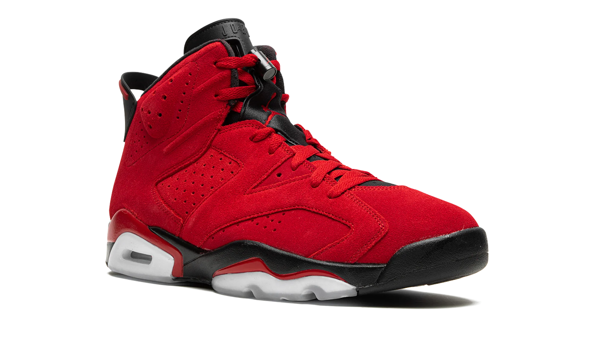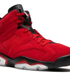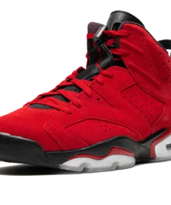 The Air Jordan 6 Toro Bravo is a fiery, mostly all-red colorway of Michael Jordans sixth signature shoe that draws inspiration from a popular, non-original Air Jordan 5 style. Based on the Toro Bravo or Raging Bull Jordan 5 that debuted in 2009, the Jordan 6 of the same name features a monochromatic red suede construction with tonal overlays that gives the shoe an anything-but-subtle appearance. A red Jumpman is embroidered on the black neoprene lace overlay. Tonal Jumpman logo detailing is stitched on the heel. Additional red accenting is found on the trim of the black midsole. Release date: June 24, 2023 Toro Bravo