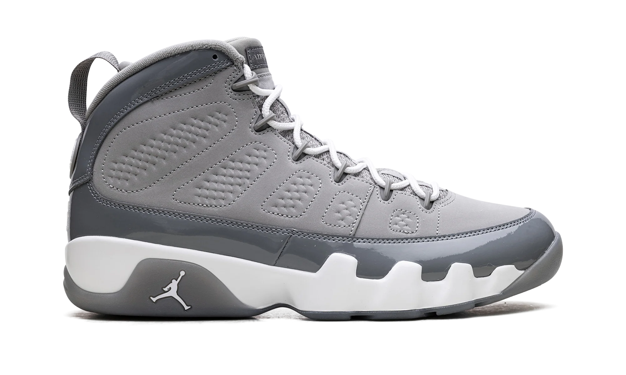 The Air Jordan 9 “Cool Grey” is a sleek, minimalist colorway of Michael Jordan’s 9th signature shoe. The 2025 edition of the AJ9 “Cool Grey” retains the key details of the Jordan 9 colorway that first released in 2002. The upper combines different shades of grey and features a patent leather mudguard. The outsole also features the Cool Grey tone, and Jordan’s jersey number “23” appears on the heel. Cool Grey 2025