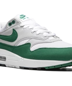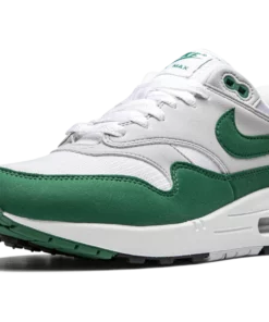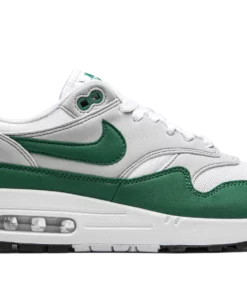 The Nike Air Max 1 Anniversary “Hunter Green” is an original-inspired colorway of the sleek performance runner from 1987 that released during summer 2020. Featuring the same OG shape and construction as the Air Max 1’s 30th anniversary releases in 2017, this “Hunter Green” makeup looks like it could have been an original colorway on the shelves all those years ago. The upper features a white mesh base that appears on the toe and collar. Overlaid grey felt panels can be found on the mid-panel, forefoot, eyelets, and heel. The Air Max 1’s classic mudguard design is finished off in Hunter Green. Green Swoosh and “Nike Air” detailing appear on the midfoot and heel, respectively. A visible Air unit in the heel completes the look of this timeless colorway. Hunter Green