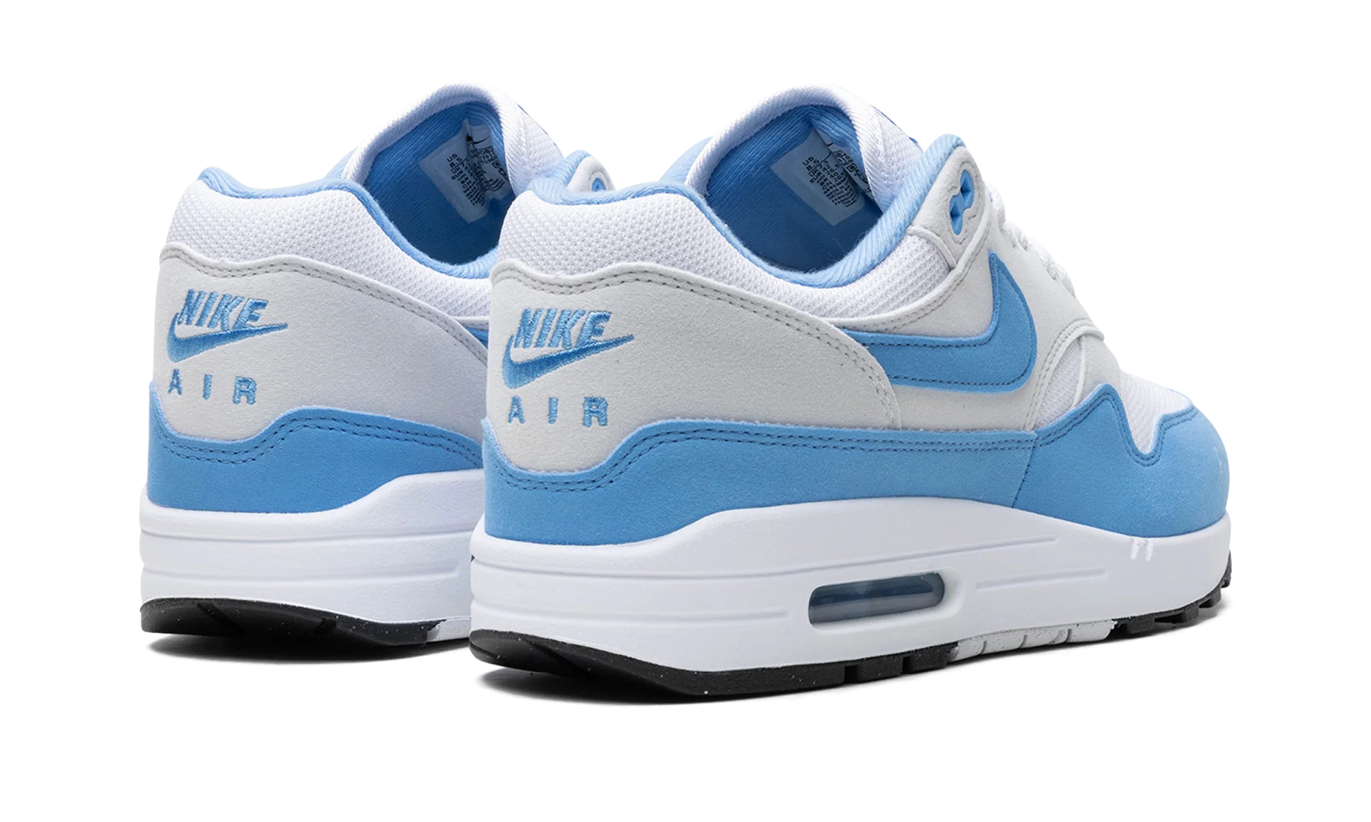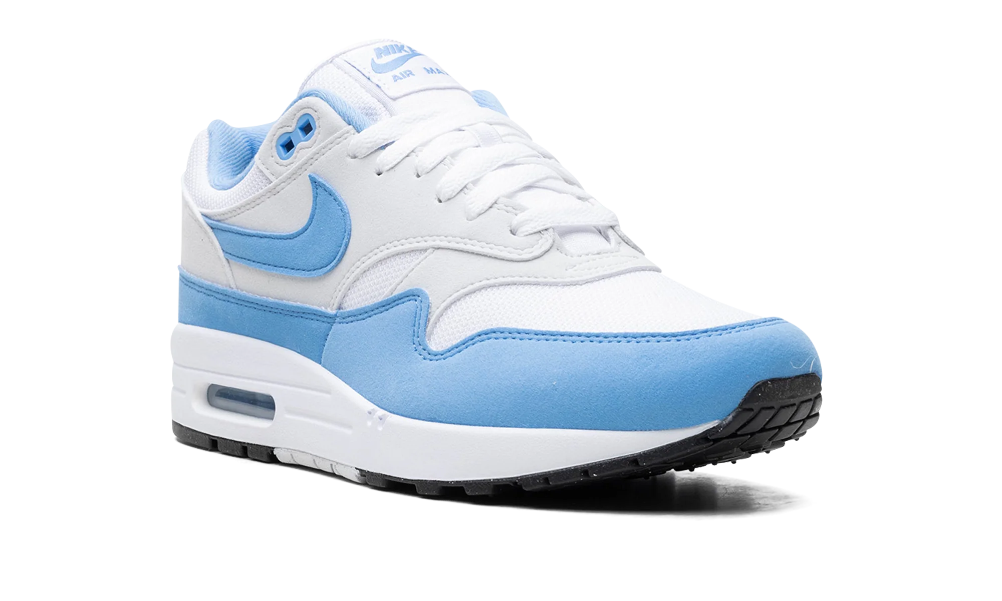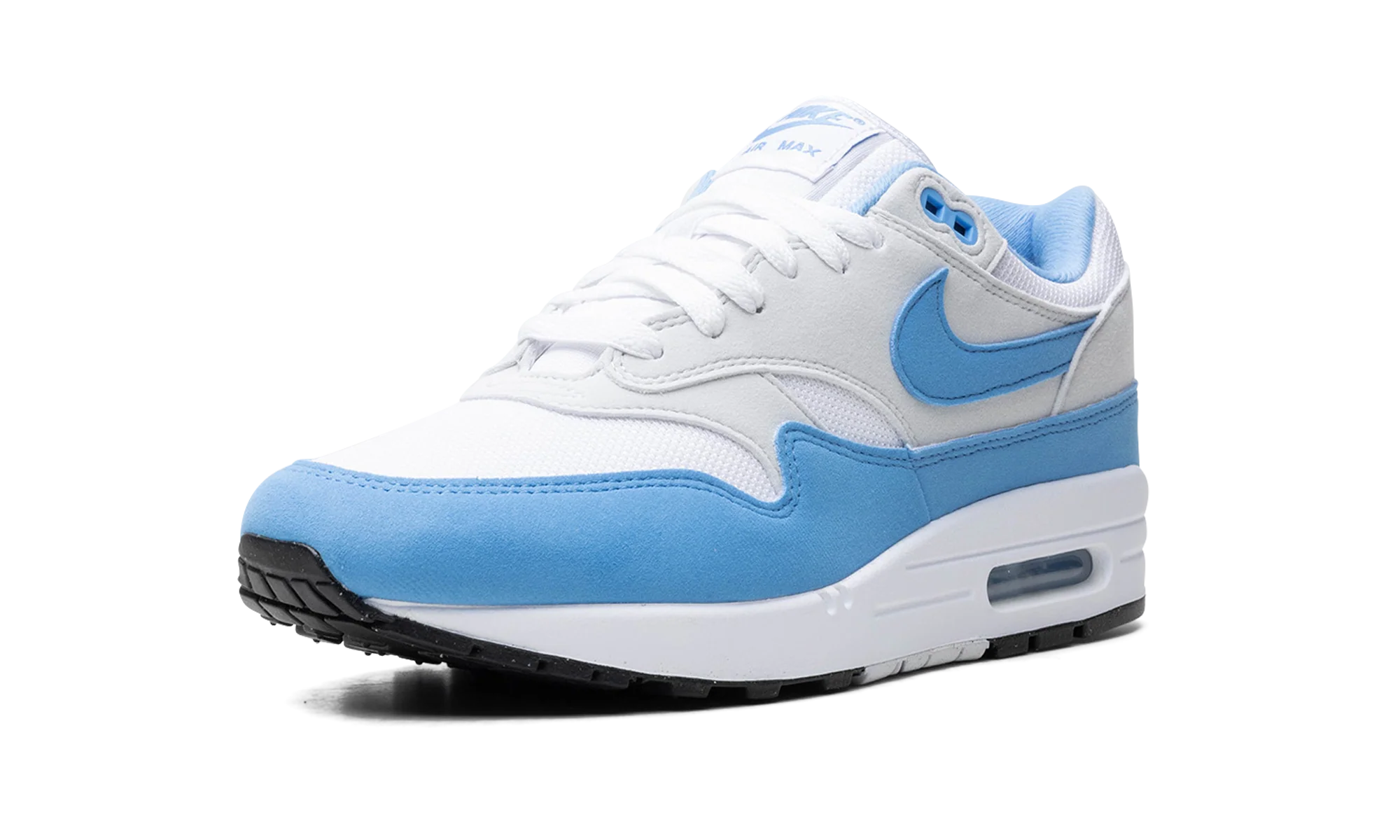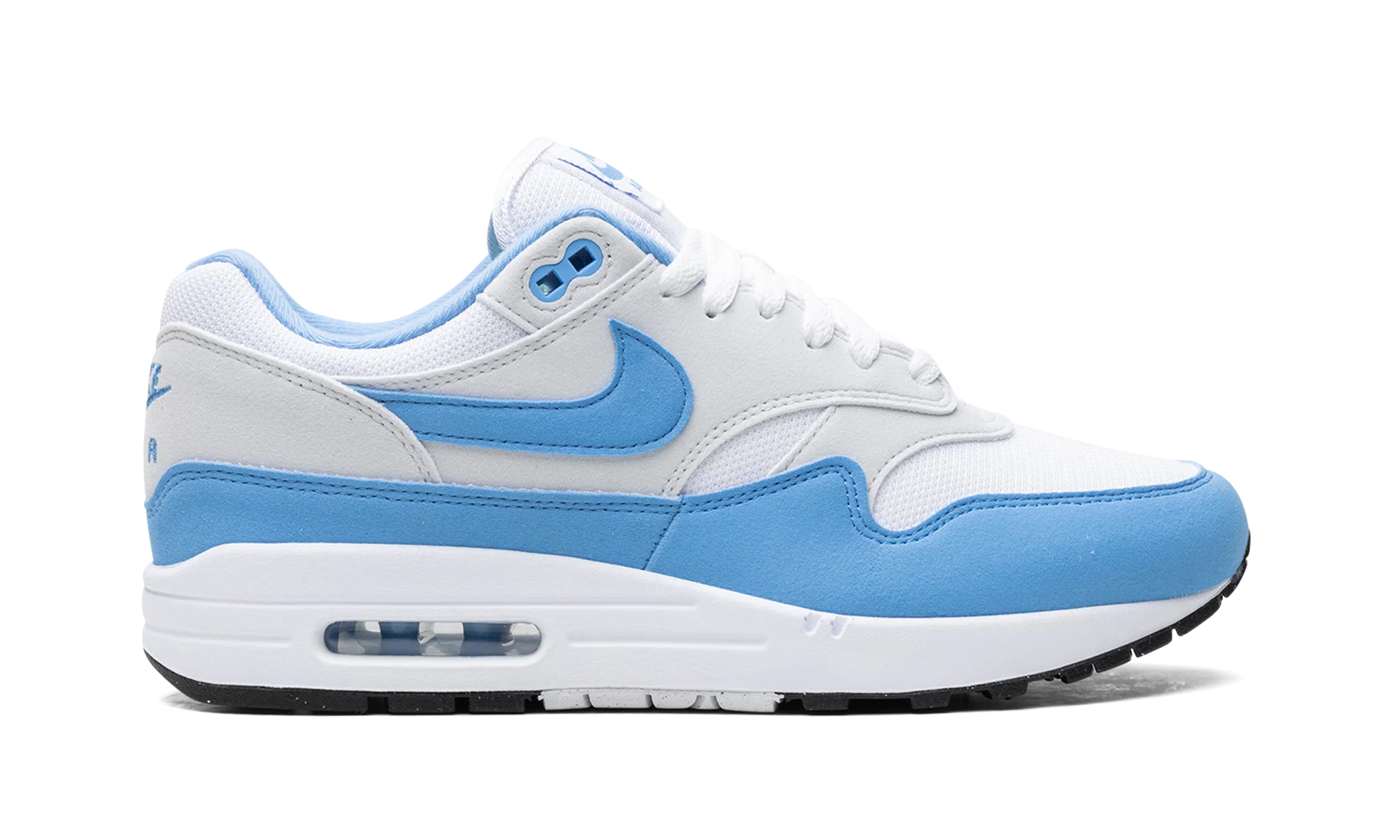The Nike Air Max 1 “University Blue” is a colorway of the retro running shoe with a decidedly North Carolina Tar Heels-esque look. While not associated with the University of North Carolina in any way, the “University Blue” Air Max 1 nonetheless celebrates the school by featuring the primary color of its athletic team’s uniforms on its design. The shoe has a white mesh base with grey suede overlays. A University Blue Swoosh on either side matches the color of the mudguard and “Nike Air” branding on the heel. Classic “Nike Air Max” detailing appears on the tongue tag. Underfoot, a visible Air bubble in the heel of the white foam midsole completes the look. University Blue