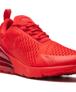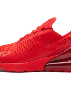 The Nike Air Max 270 “University Red” is a monochromatic red colorway of the modern shoe inspired by Nike’s Air Max 180 and Air Max 93 models. The “University Red’s” snug sock-like build is loosely drawn from the Air Max 180’s mesh and suede appearance. The 270’s large Air bubble in the heel is a dramatized take on the Air Max 93’s 270-degree Air cushioning unit. As for the rest of the shoe, the entire upper is finished off in a fiery University Red material that is both lightweight and breathable. Two Swooshes appear on the collar and forefoot. “Air” and “270” branding can be located on the heel and tongue, respectively. The Air Max 270 features a robust, visible Air unit in the heel of its midsole for all-day comfort. University Red