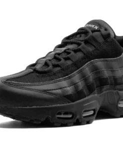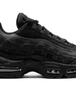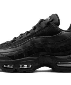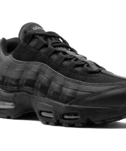 The Nike Air Max 95 “Triple Black” is a versatile, monochromatic black colorway of the classic running shoe. Designed in an all-black-everything style, the aptly named “Triple Black” Air Max 95 features a black mesh base with tonal wavy layered leather panels on its design. A black Swoosh is embroidered on the lateral side of the collar. Classic “Air Max” branding is stitched onto the tongue. Reflective detailing can be found on the tongue and on the back of the shoe. Underfoot, the design is complete with a black foam midsole with visible Max Air cushioning units in the forefoot and heel. Triple Black