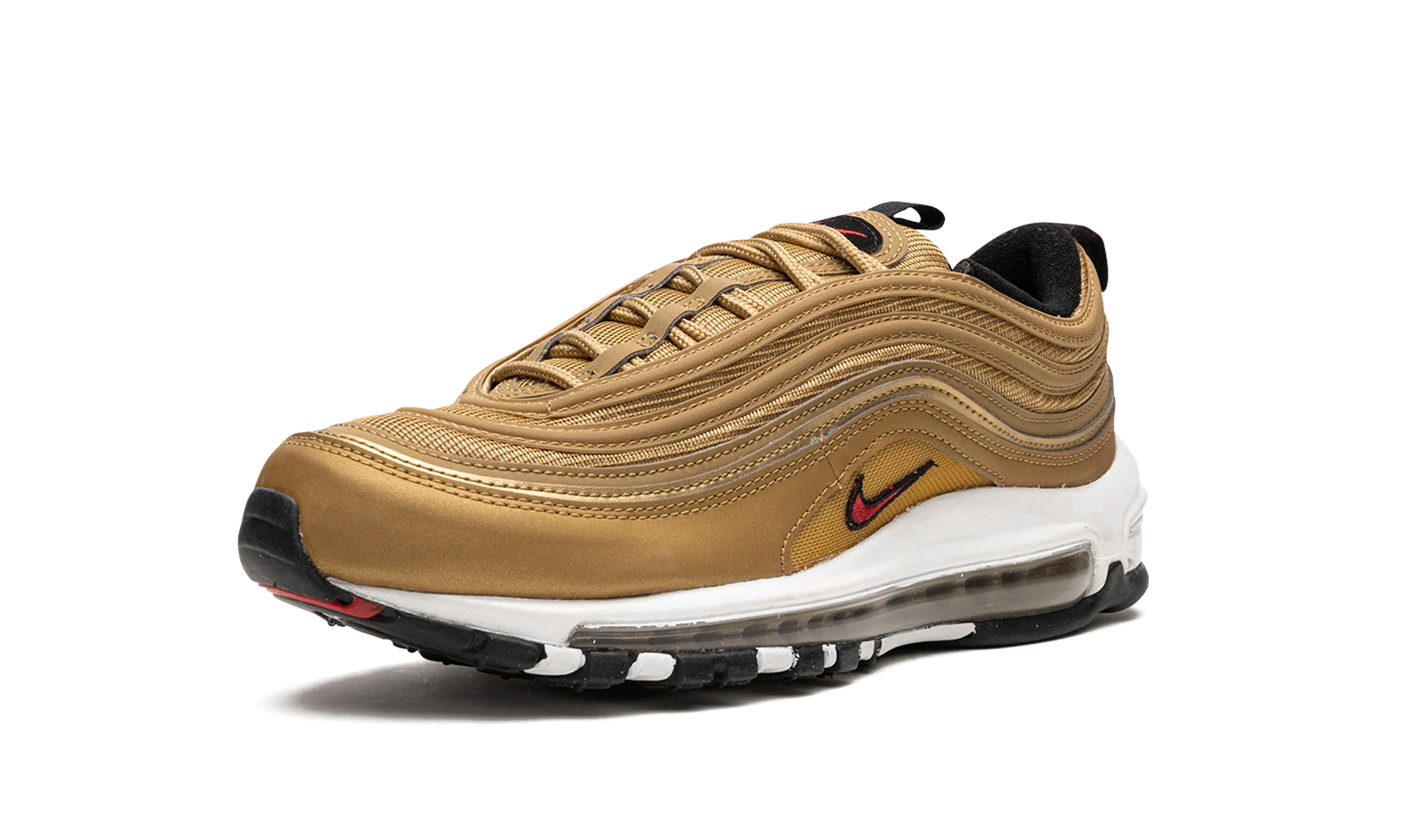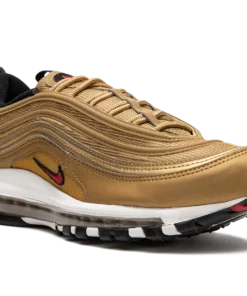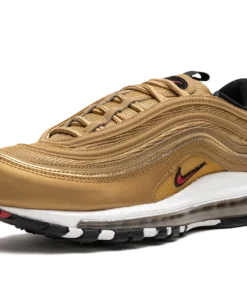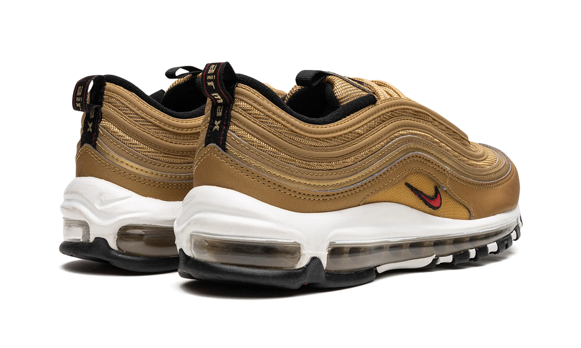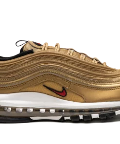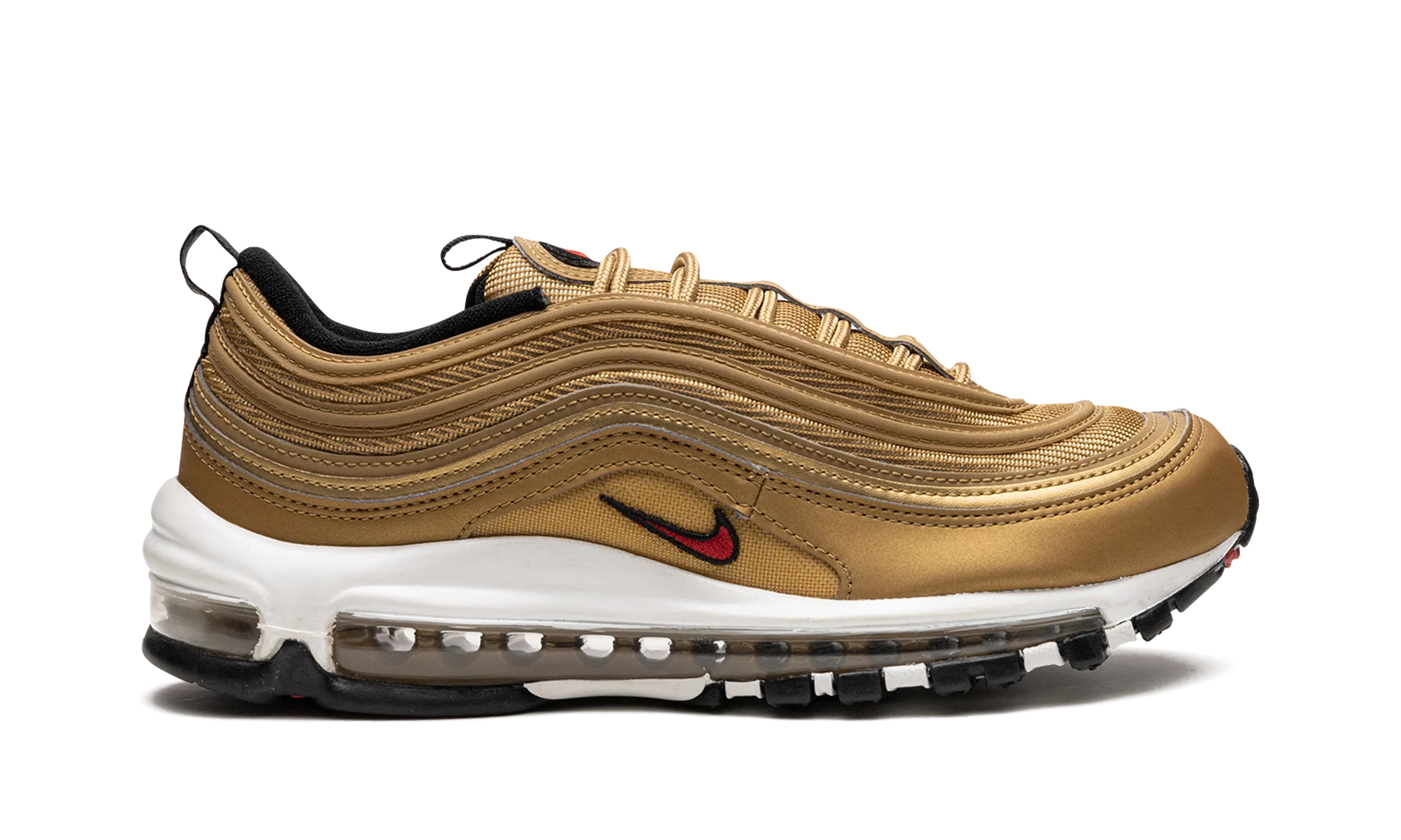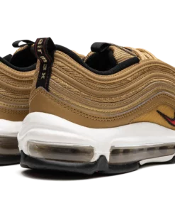 The Women’s Nike Air Max 97 “Gold Bullet” is a women’s-exclusive colorway of the retro running shoe that looks to the model’s “Silver Bullet” release for inspiration. Like the “Silver Bullet,” the Air Max 97’s “Gold Bullet” colorway has an unmistakable design that draws attention everywhere it goes. The shoe’s base is featured in Metallic Gold, as are the tonal wavy leather overlays that wrap around the shoe. A small University Red Swoosh appears on either side above the white foam midsole. The logo is also found on the circular black overlay on the tongue. Red “Air Max” detailing is printed on the heel tab. A full-length Max Air cushioning unit in the midsole completes the design. Release date: March 7, 2023 Gold Bullet