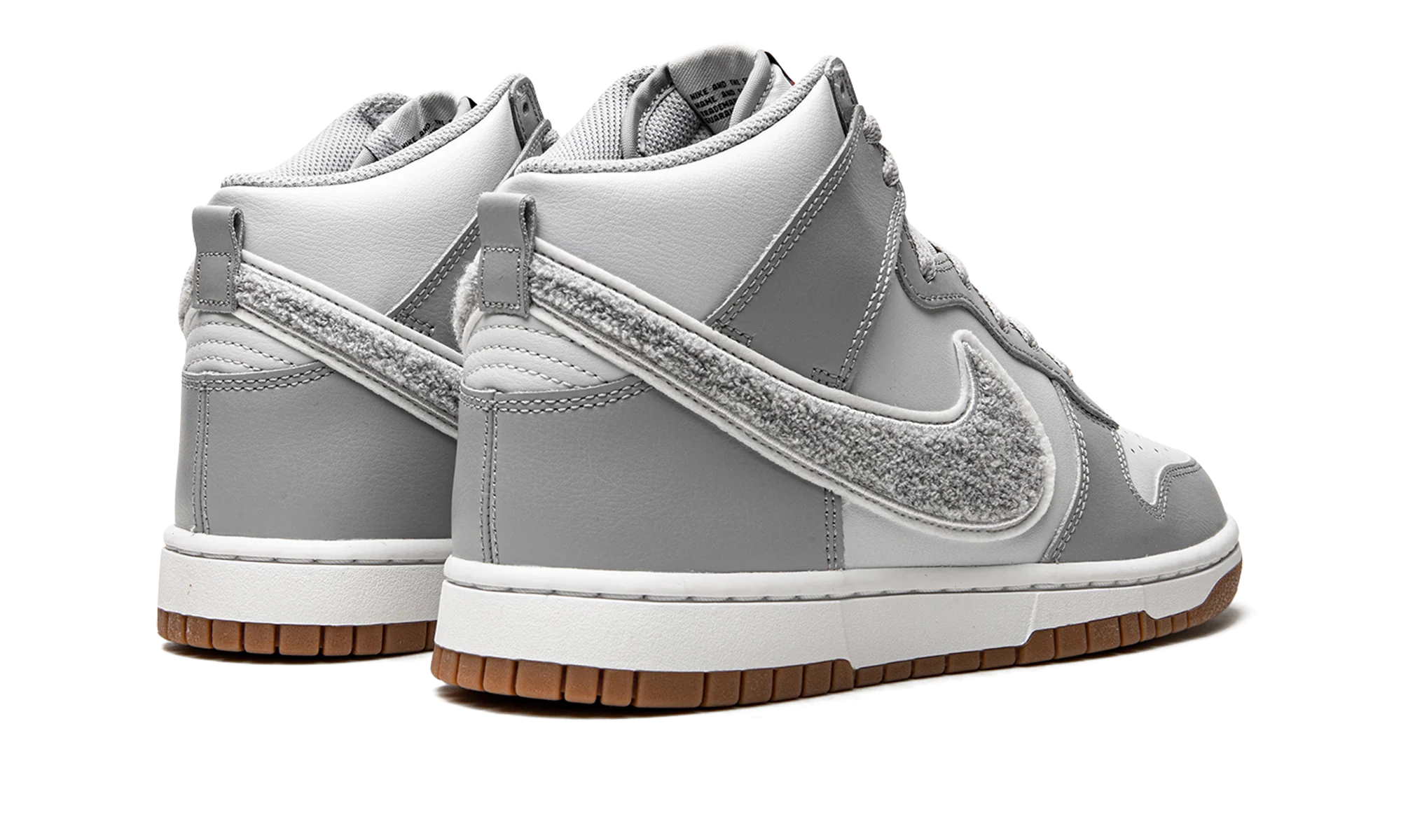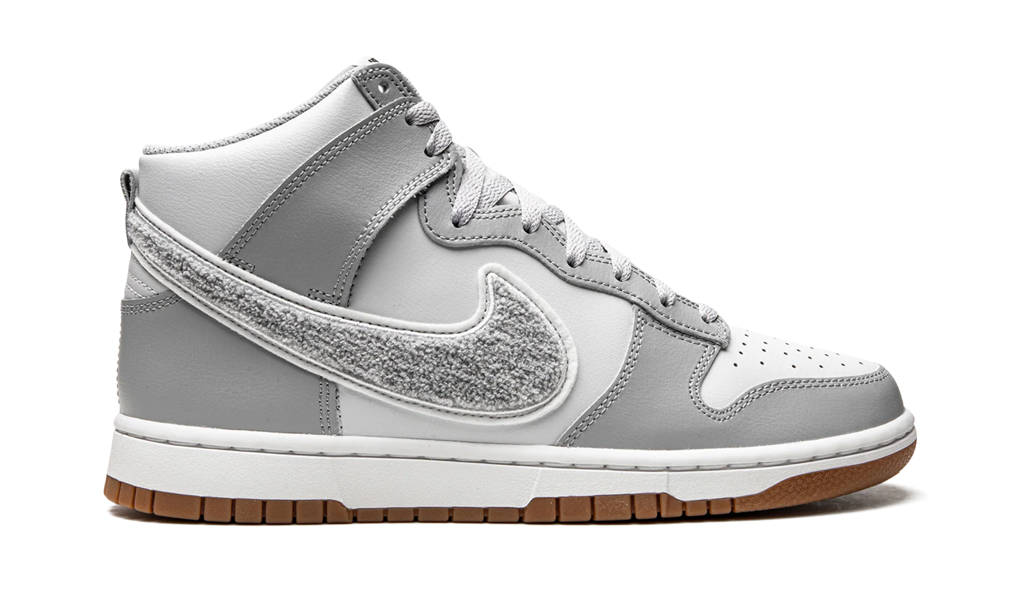 The Nike Dunk High “Chenille Swoosh – Light Smoke Grey” is an updated version of the classic sneaker with an oversized chenille Swoosh. The Dunk High “Chenille Swoosh – Light Smoke Grey” features a neutral, grey-based appearance with Light Smoke Grey leather on the overlays and light grey leather on the base. The large Swoosh logo found on both sides of the shoe appears in grey chenille. Grey laces are layered over the tonal nylon tongue. A white midsole and gum rubber outsole complete the look. Release date: November 10, 2022 Chenille – Light Smoke