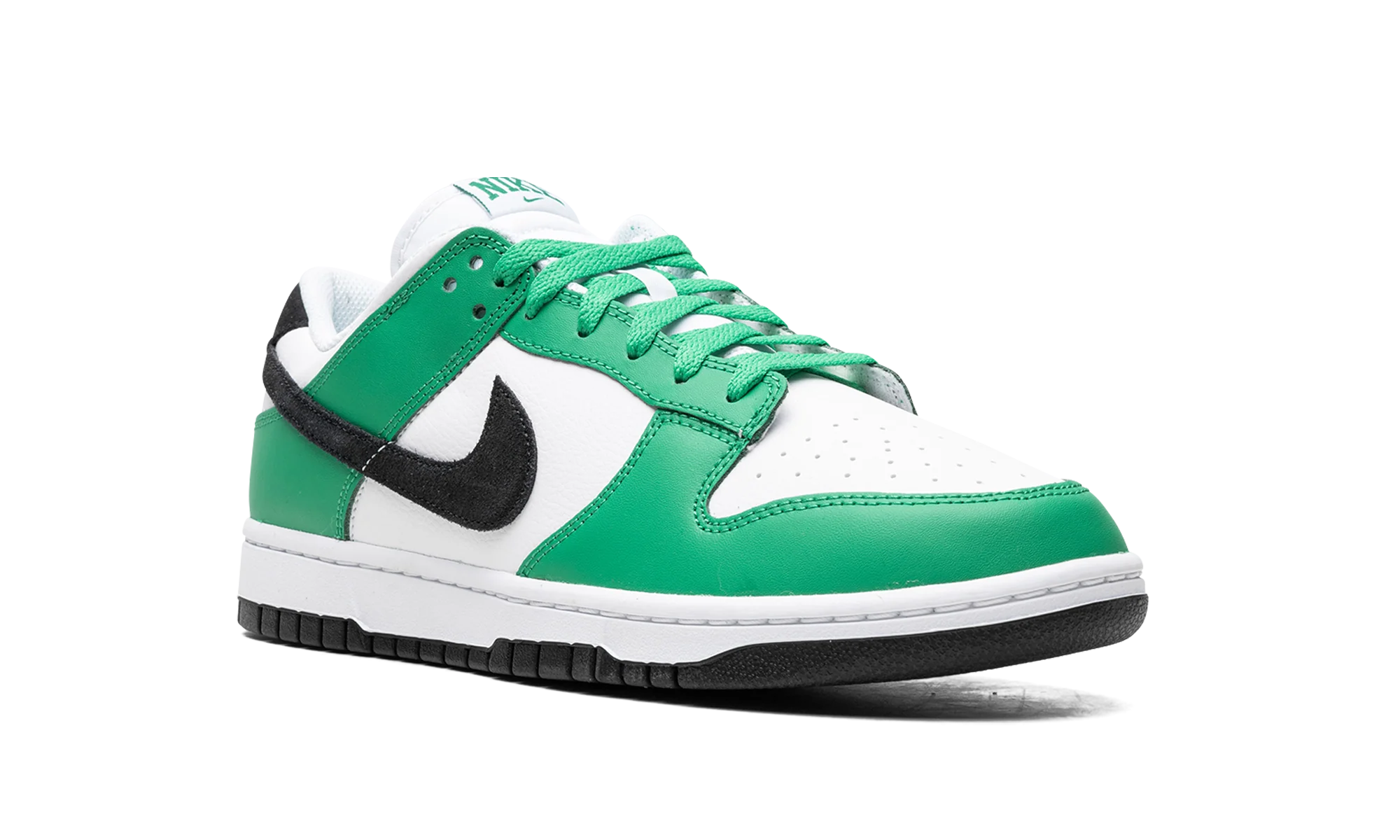 The Nike Dunk Low “Celtics” is a colorway of the retro basketball shoe that features the team uniform colors of the Boston Celtics on its design. While not officially associated with the Celtics, this Dunk Low still shows love to the storied basketball team by featuring its uniform colors across its leather panels. More specifically, the shoe has a white leather base with Stadium Green leather overlays and a black leather Swoosh. Block letter “Nike” branding appears on the tongue tag, on the heel, and on the insole. Release date: June 13, 2023 Celtics