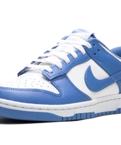 The Nike Dunk Low “Polar Blue” is a colorway of the retro basketball sneaker with a clean two-tone color block highlighted by light blue. Reminiscent of the classic “UNC” colorway, this Dunk has a white leather base and Polar Blue leather overlays. A Polar Blue leather Swoosh appears on the mid-panel. “Nike” branding is embroidered on the heel and printed on the tongue. A white midsole and blue outsole complete the look. Release date: October 14, 2023 Polar Blue / White
