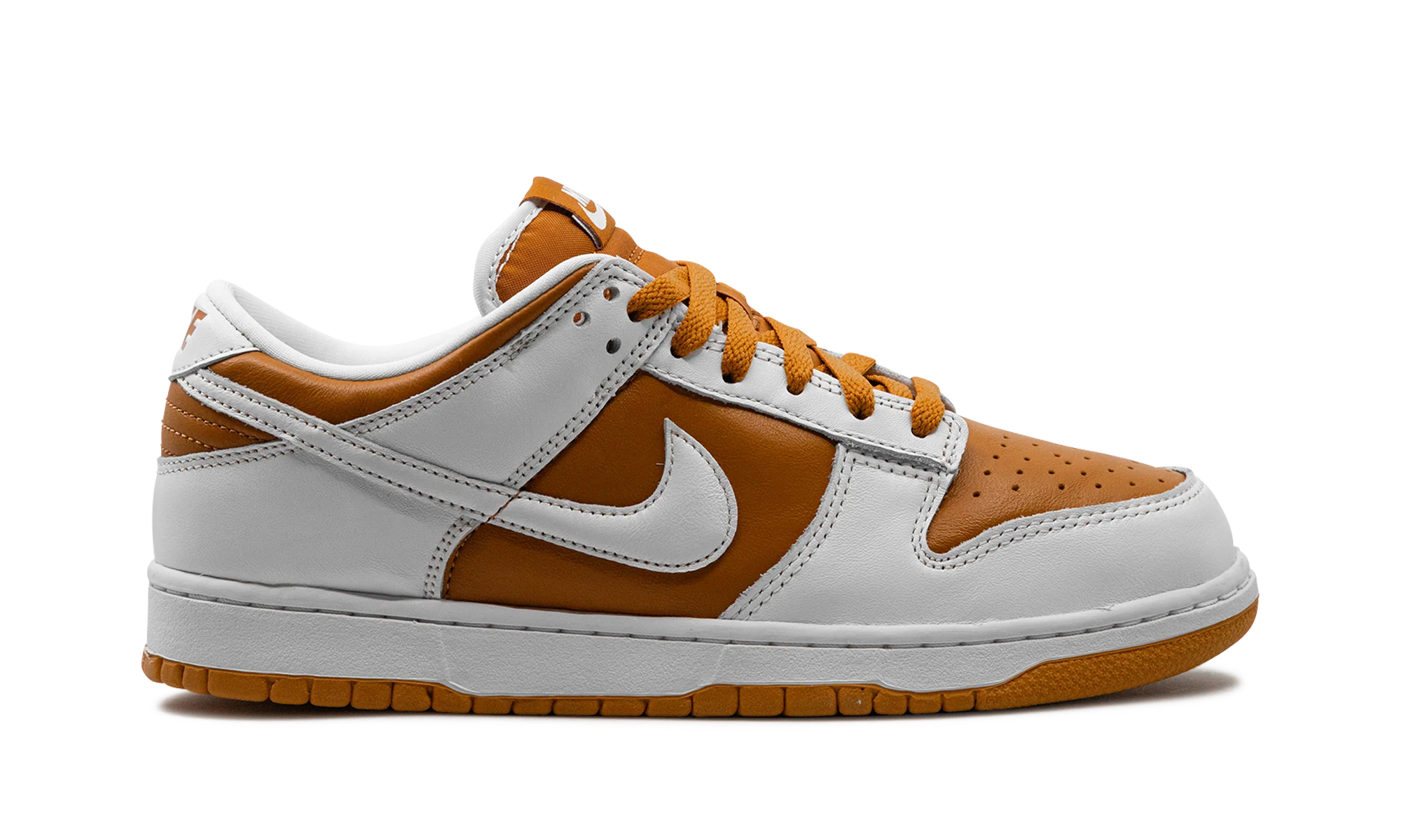 The Nike Dunk Low CO.JP “Reverse Curry” is an original colorway of the classic basketball sneaker from Nike’s former “Concept Japan” collection of the late-1990s and early-to-mid 2000s. Debuted in 1999, the “Reverse Curry” was reissued in 2024 for the first time in celebration of the theme’s 25th anniversary. The modern version features a Dark Curry leather base and white leather overlays and Swoosh branding. Classic “Nike” branding on the heel is embroidered in a Dark Curry hue. Additional “Nike” branding can be found on the tongue tag. Underfoot, a white midsole and Dark Curry outsole complete the look of this classic Dunk. Release date: January 12, 2024 Reverse Curry