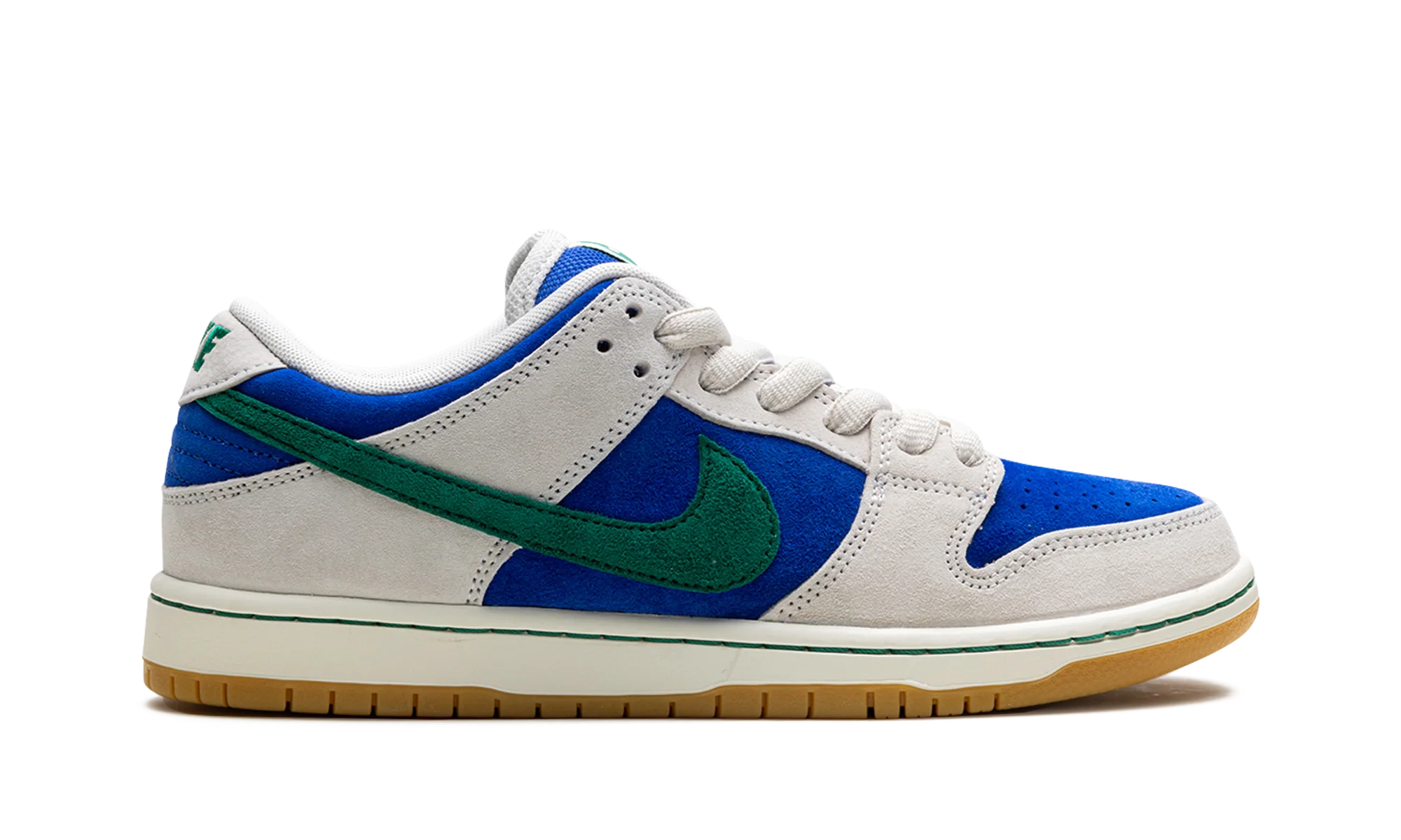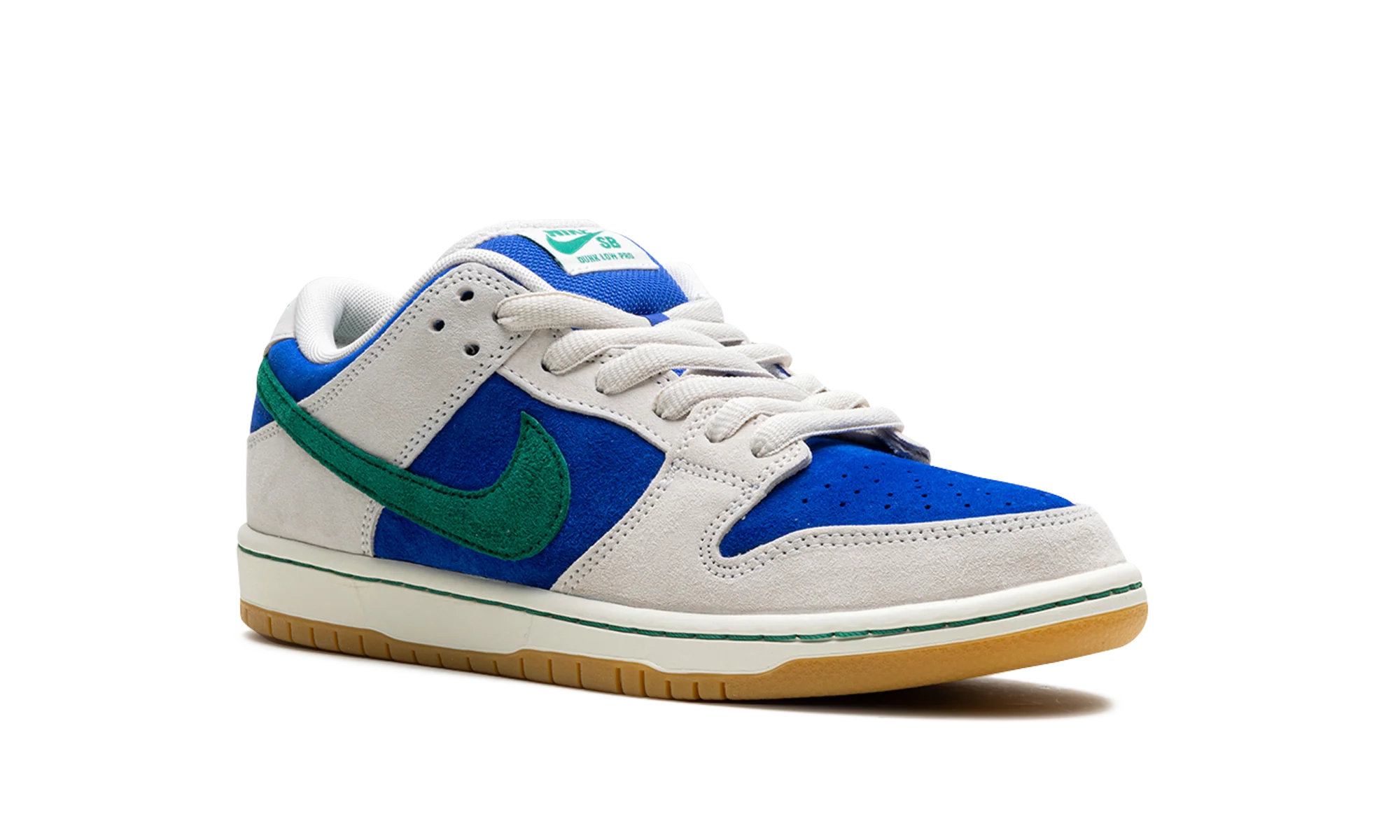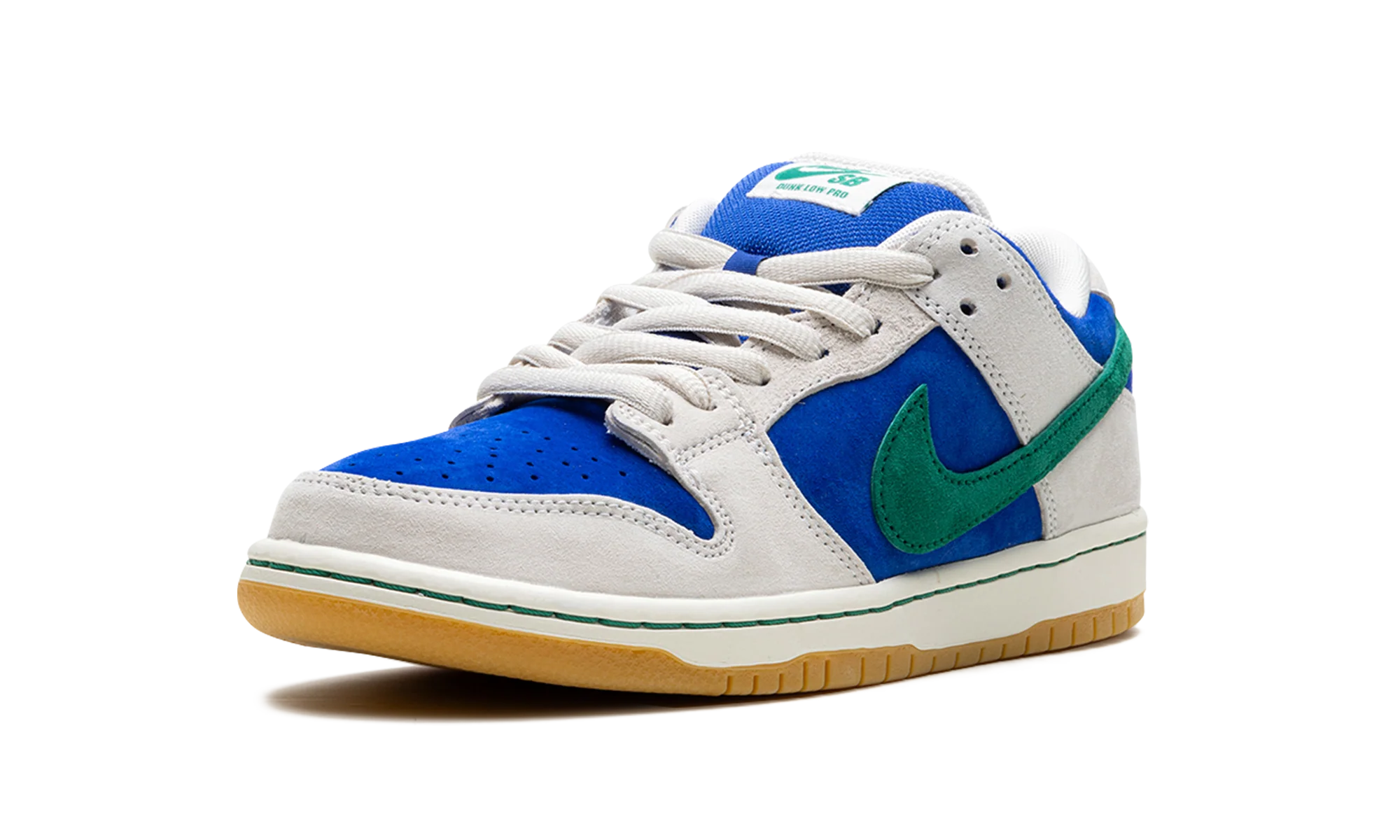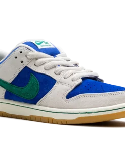 The Nike SB Dunk Low “Hyper Royal/Malachite” is a colorway of the skateboarding shoe with a can’t-miss color scheme. Made for skateboarding or casual wear, the SB Dunk Low “Hyper Royal/Malachite” comes in eye-catching colors, with Hyper Royal suede appearing on the base and Phantom-colored suede appearing on the overlays. A Malachite suede Swoosh logo is seen on the sides. More Malachite accenting appears on the “Nike” embroidery on the heel and on the branding on the tongue tag. A gum rubber sole completes the look. Hyper Royal Malachite
