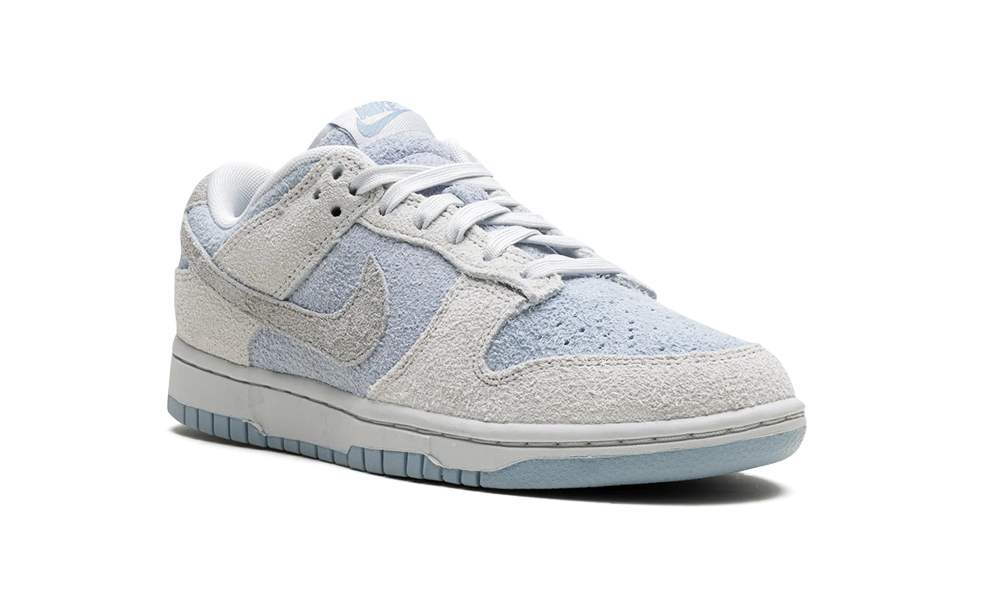 The Women’s Nike Dunk Low “Photon Dust/Light Armory Blue” is a women’s-exclusive colorway of the classic shoe with a unique, all-suede design. The upper features a Light Armory Blue base with Photon Dust overlays and Swoosh branding designed in a hairy suede material. Classic “Nike” detailing is embroidered on the heel tab, while “Nike” and Swoosh logos can be found on the tongue tag. Underfoot, a white midsole and light blue outsole put the finishing touches on this eye-catching Dunk. Release date: January 25, 2024 Suede – Photon Dust / Light Armory Blue
