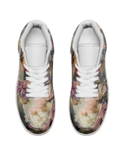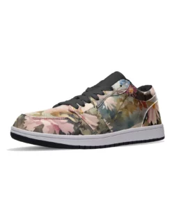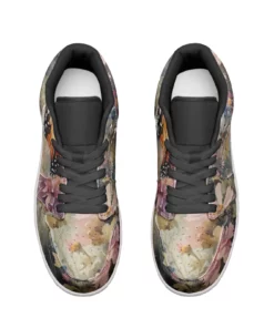 Floral Pattern Leather Low Top Sneakers for Women