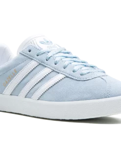 The adidas Gazelle “Clear Sky” is a light blue colorway of the classic sneaker. The Gazelle seen here treats the legacy silhouette to an easy-on-the-eyes design that can be worn by anyone. The upper has what adidas calls a Clear Sky suede construction. A tonal suede overlay is seen on the toe. White leather Three Stripes and gold “Gazelle” branding appear on either side of the sneaker. Additional white leather is seen on the adidas-branded heel tab. Blue adidas detailing is found on the tongue. A white rubber sole completes the light and airy look. Release date: June 15, 2023