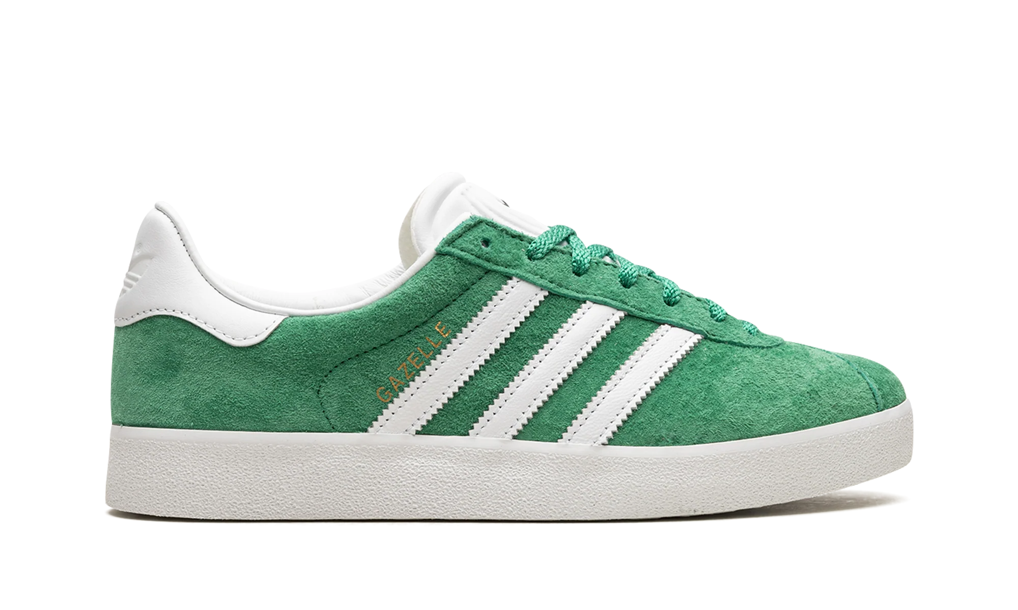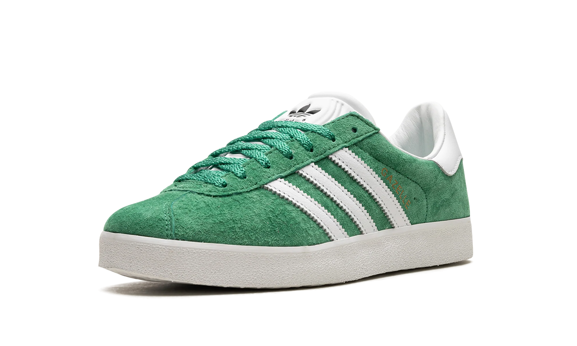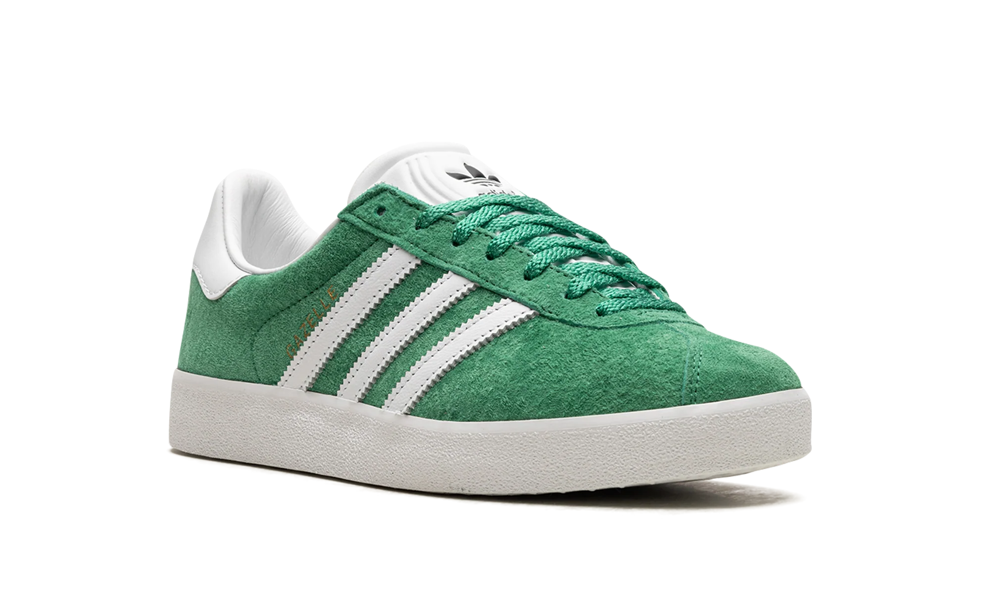 The adidas Gazelle 85 “Court Green” is a classic-looking colorway of the popular lifestyle shoe by the German sneaker brand. The adidas Gazelle 85 in “Court Green” features a green suede construction with white leather Three Stripes and gold foil “Gazelle” text on the lateral side. An adidas Trefoil logo is debossed on the white leather heel tab while a black Trefoil logo is seen on the tongue. A white rubber midsole completes the clean colorway.