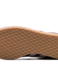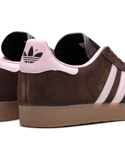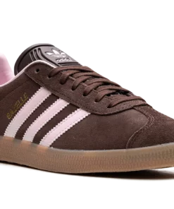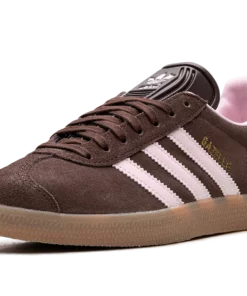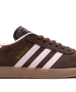 The Gazelle is one of ADIDAS’s most iconic and timeless silhouettes, originally designed as an all-around training shoe. This specific edition features a low-profile build with an upper primarily in Auburn (a reddish-brown tone), which is typically constructed from high-quality suede. The classic three-stripes branding and heel tab are highlighted in Clear Pink, providing a soft, contrasting pop of color. The shoe maintains the signature design elements, including a textured tongue, T-toe overlay, and a rubber outsole.