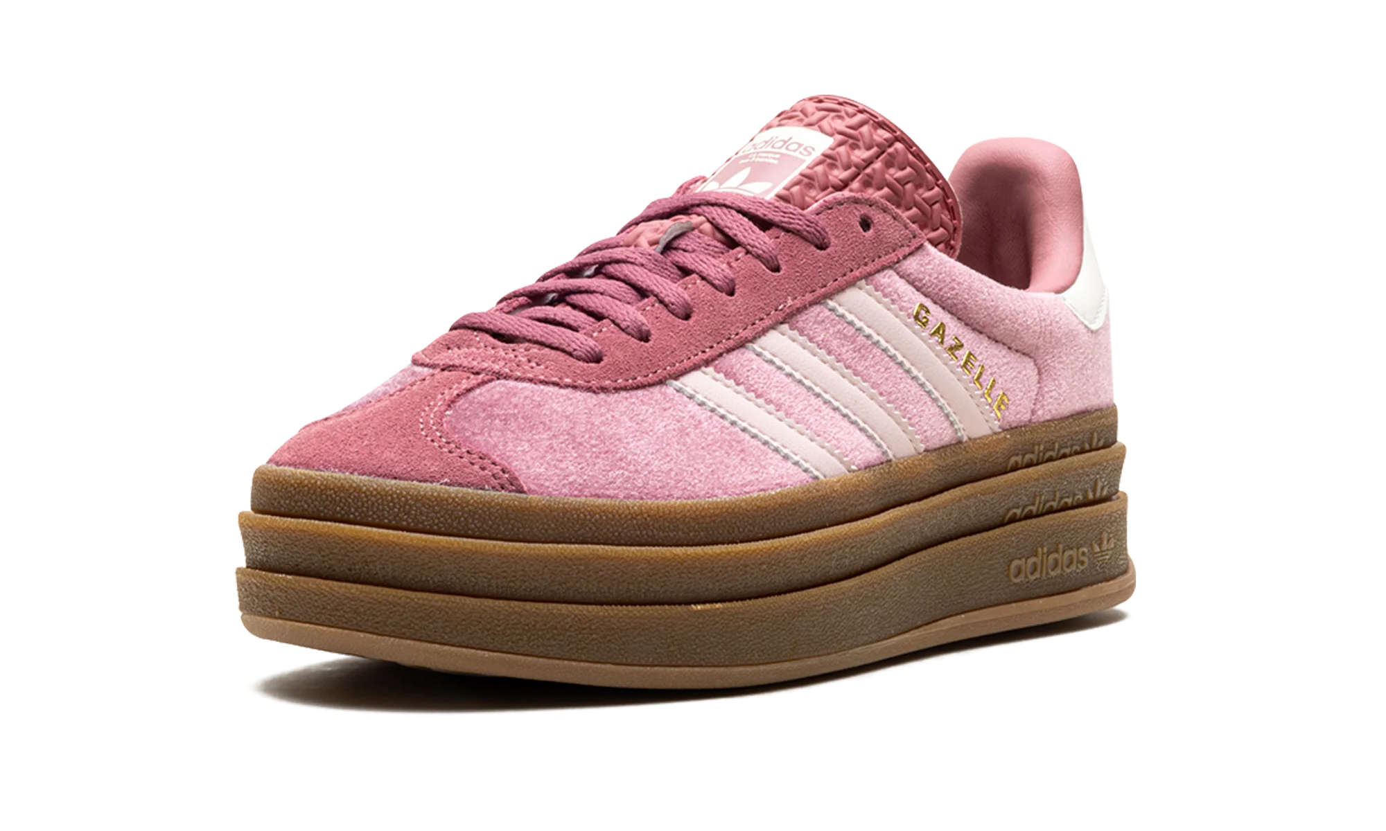 Elevate your entire look with the stunning Adidas Gazelle Bold WMNs, ‘The Velvet Platform.’ This iconic silhouette is boldly stacked three layers high on a platform rubber outsole, giving you a fresh perspective on a retro classic. Crafted with a luxurious, soft velvet upper in a gorgeous Sandy Pink tone and finished with crisp Off White accents. These are the perfect statement trainers to blend ’70s sporty heritage with everyday elegance and lift your style.
