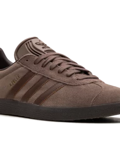 The adidas Gazelle “Earth Strata/Brown” is an all-brown colorway of the retro sneaker. The popular silhouette by the German footwear company features a brown suede construction with slightly darker brown leather Three Stripes branding on each side of the shoe. Gold “Gazelle” detailing appears on the lateral side of the mid-panel, while an adidas Trefoil logo is printed tonally on the brown leather heel tab. A debossed adidas Trefoil logo can be seen on the brown tongue. Underfoot, a dark brown rubber sole completes the look.
