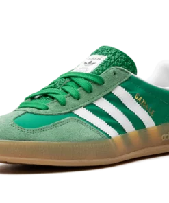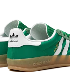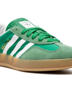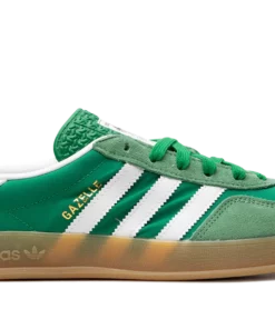 Hit the streets in the vibrant Adidas Gazelle Indoor, the “Terrace Standout,” in a bold “Collegiate Green Gum” colorway. Once an iconic indoor training shoe, this model sports a plush suede upper in a striking Collegiate Green, contrasted by crisp Cloud White leather accents. The defining feature is the slightly translucent gum rubber outsole, which offers reliable grip and a unique, classic style, making this essential sneaker the perfect foundation for any retro or contemporary look.