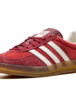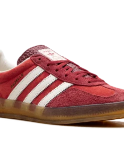 Inject a jolt of vintage style into your daily rotation with the ADIDAS Gazelle Indoor WMNS “Active Maroon” sneaker. Known simply as “Active Maroon,” this women’s exclusive revives a 1979 indoor training icon with a rich suede upper in a deep, captivating red. The semi-translucent gum rubber outsole and signature three-stripes deliver an authentic retro aesthetic. Comfortable and versatile, these shoes effortlessly blend history with contemporary elegance, making every step a confident statement.